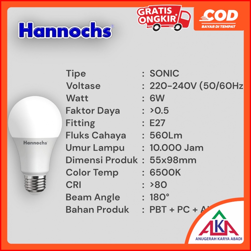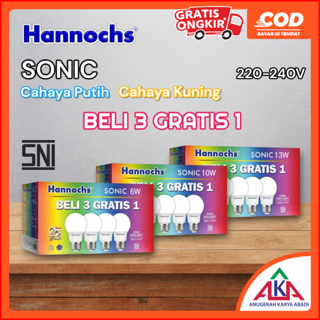 Paket 4 Pcs Hannochs Sonic Bohlam Lampu Led 6 10 13 Watt Cool Daylight Warm White