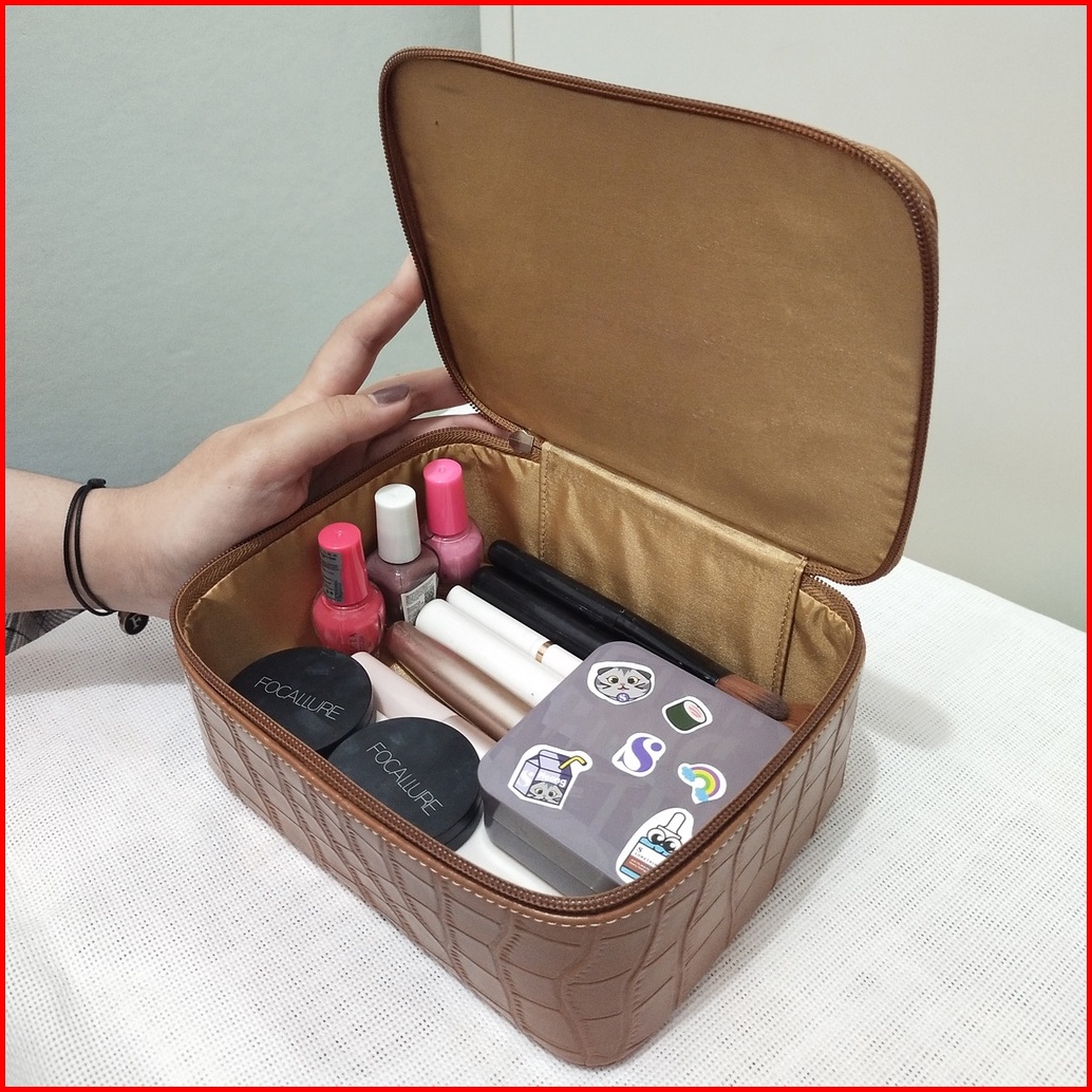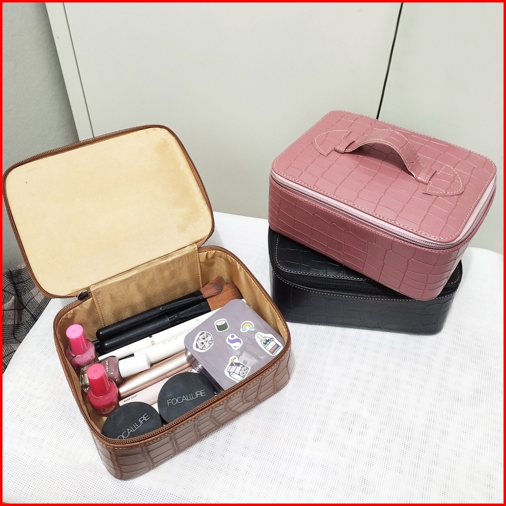 Pouch Make Up Cewek Beauty Case Travel Organizer Tas Kosmetik Polos Tempat Alat Rias Kotak Alat Rias