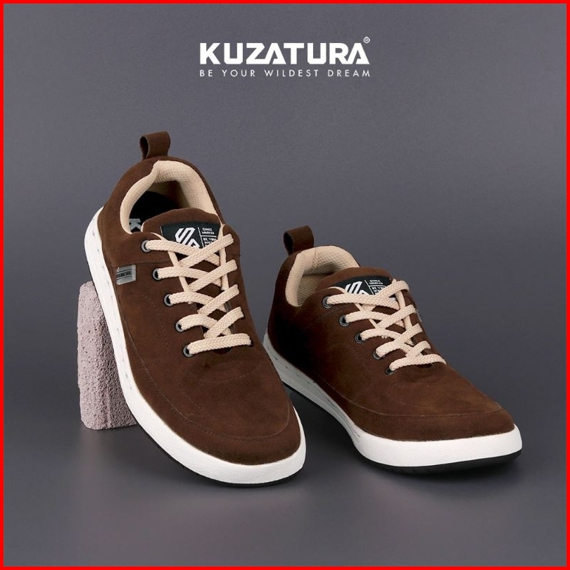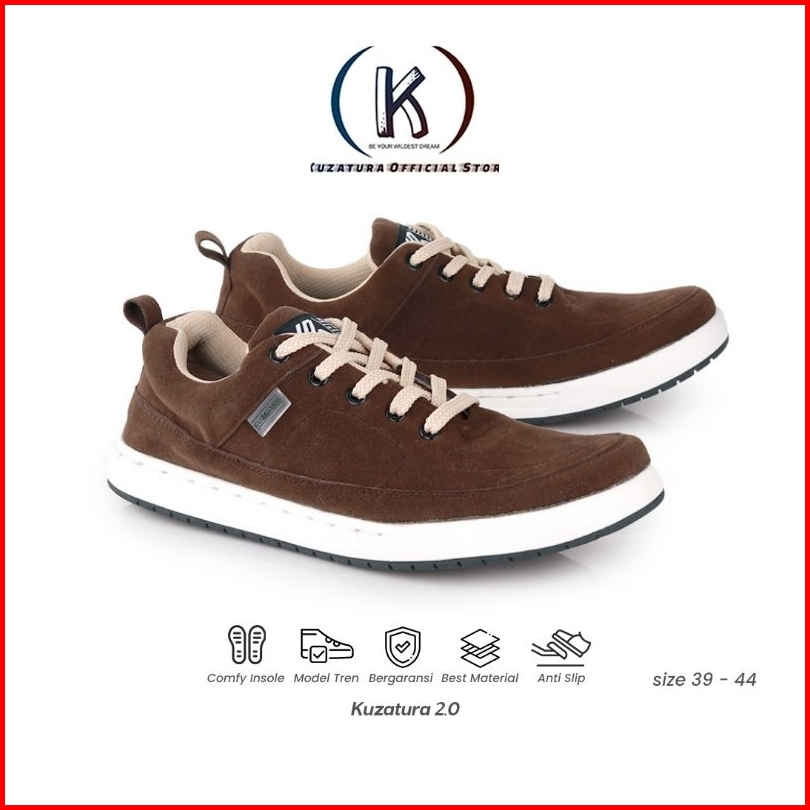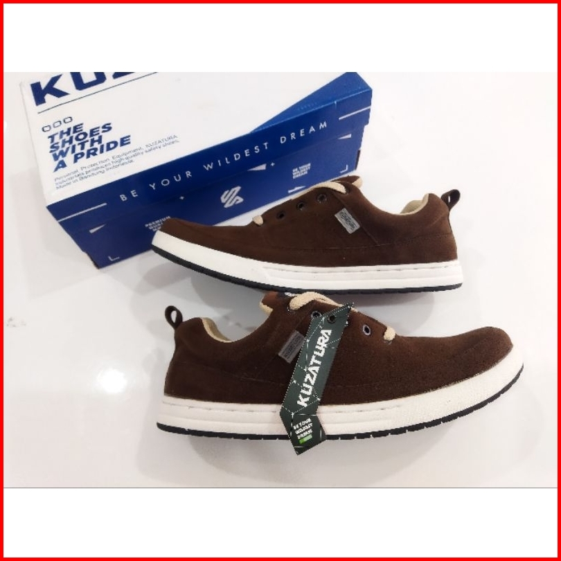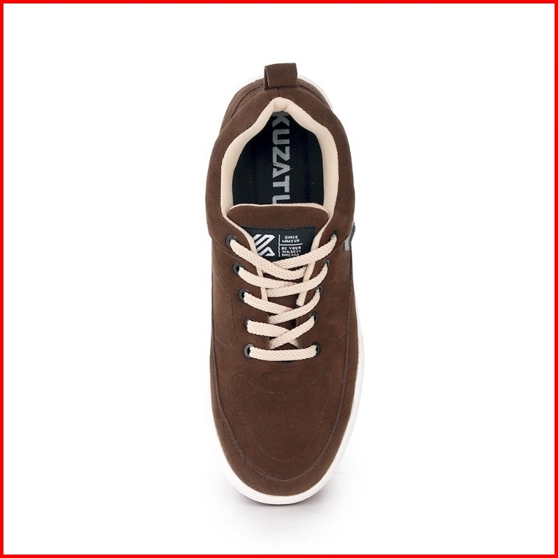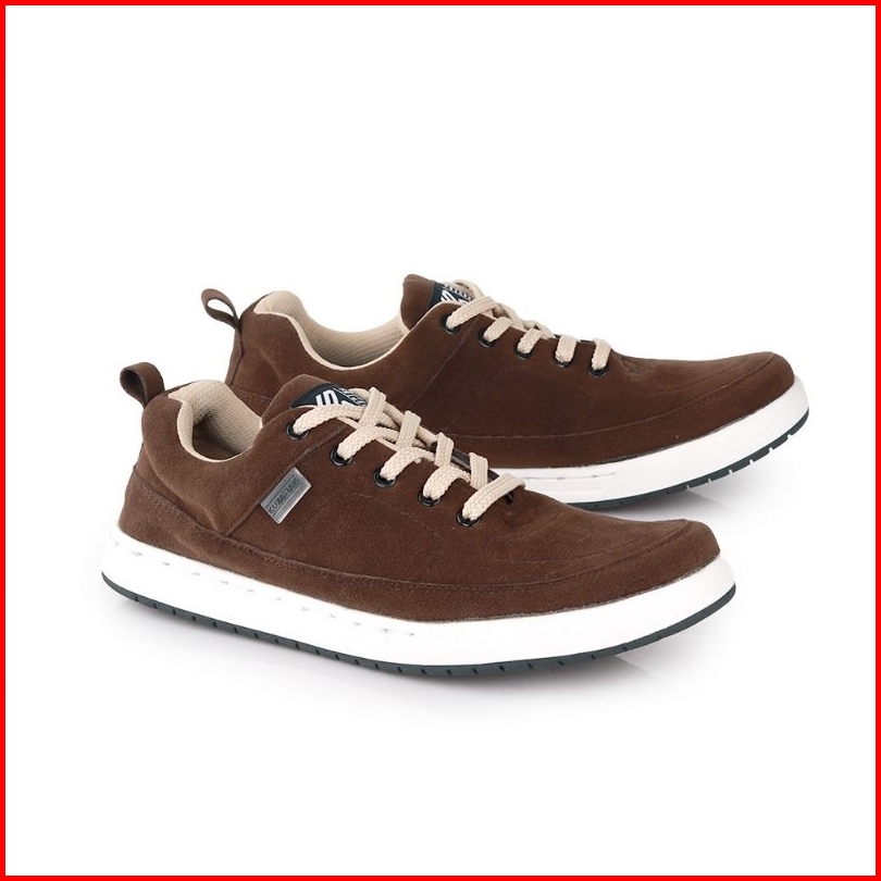 Sepatu Original Pria 100 Kulit Asli Suede Coklat List Putih Extra - Sol Sneakers Casual Snekers Dewasa