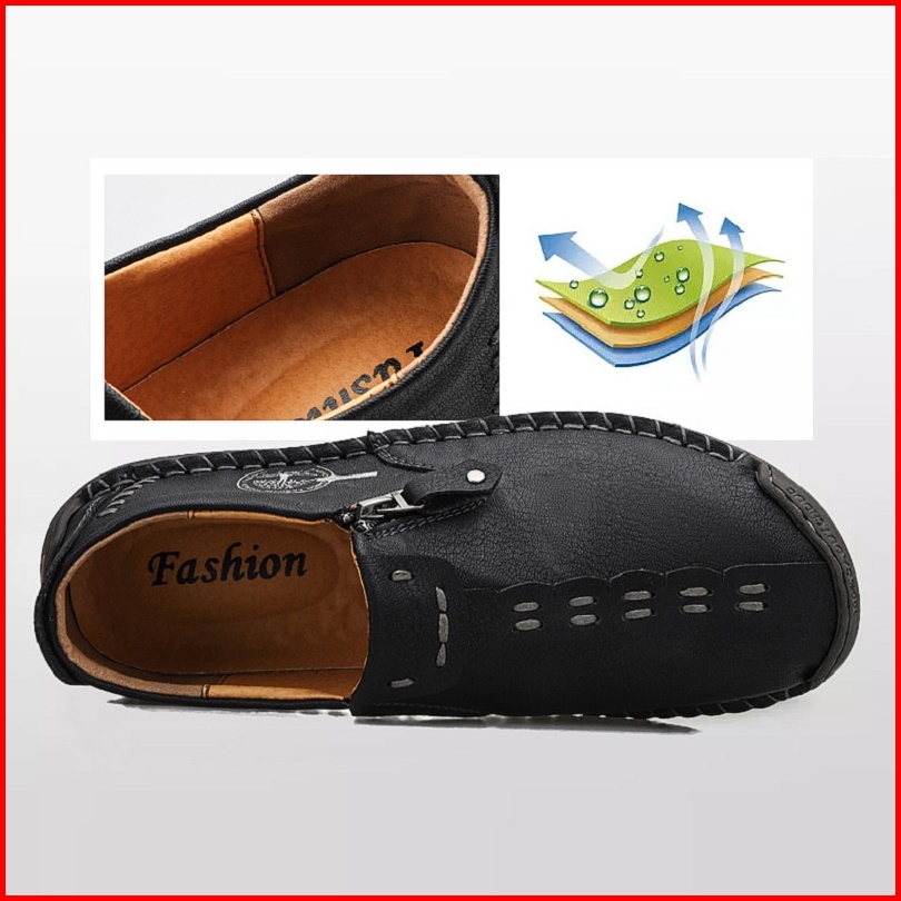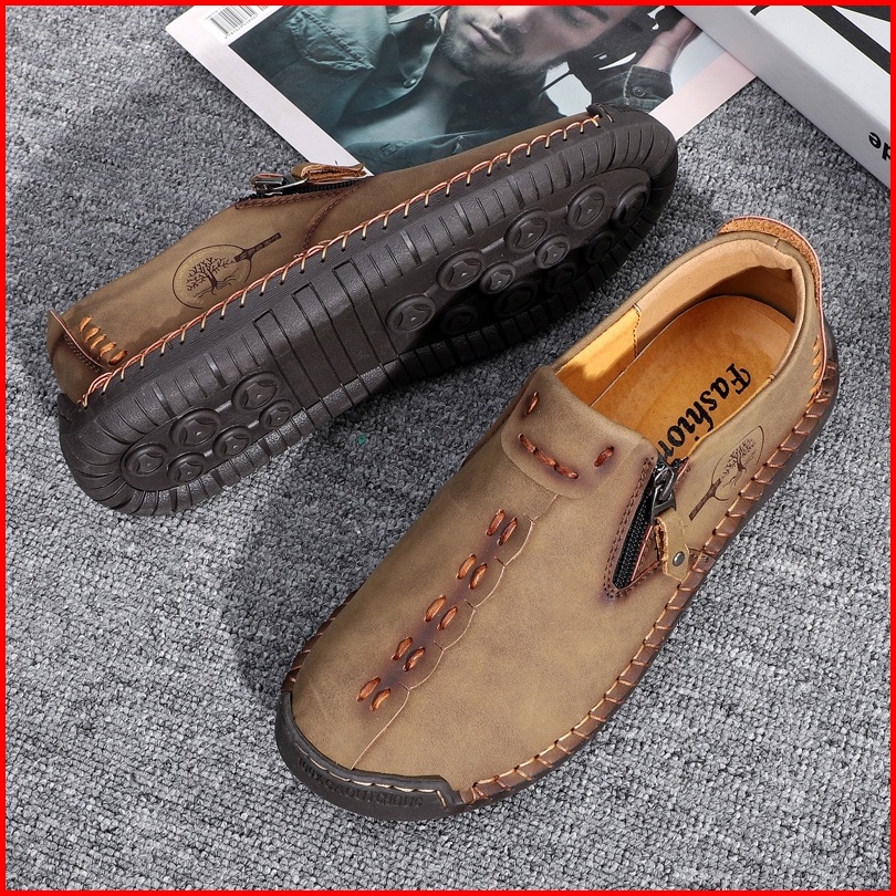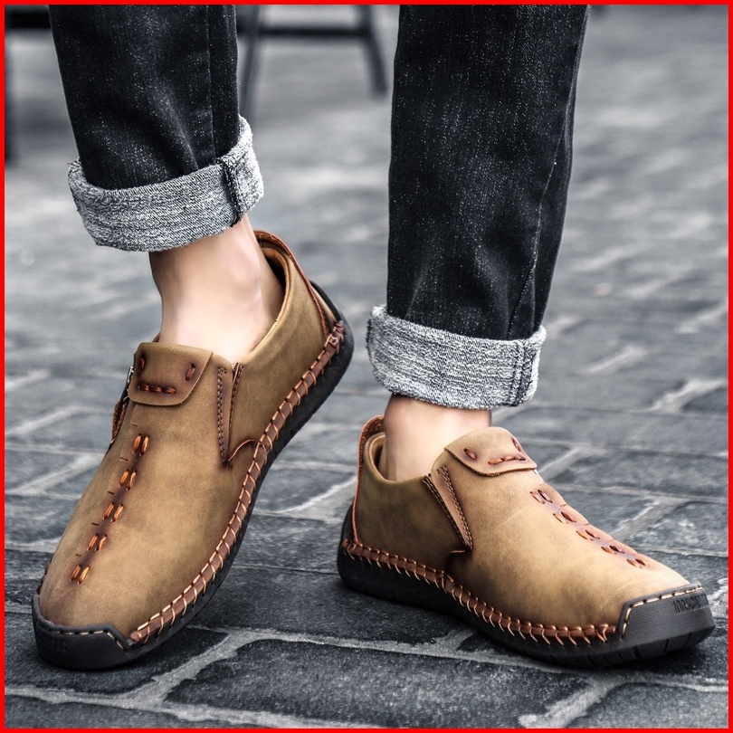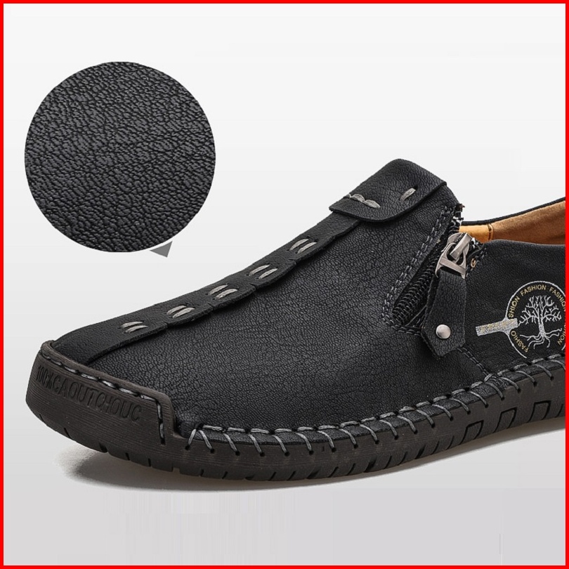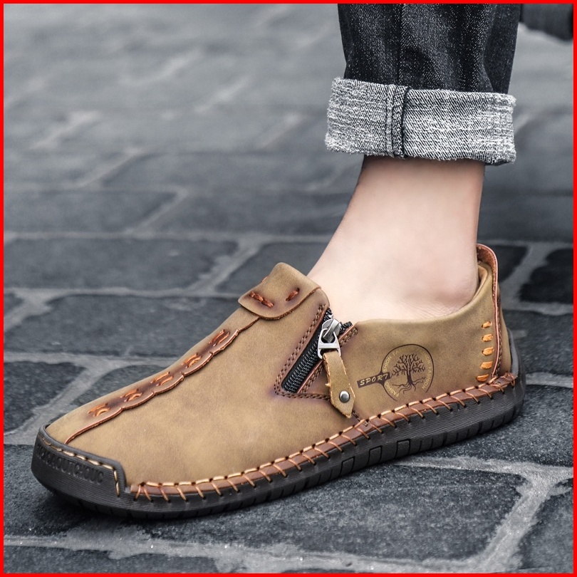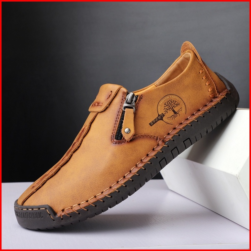 Terbaru 100 Kulit Asli Sepatu Pria Slip On Loafers Pantofel Pria Tanpa Tali Kulit Sapi Original Casual Import Resleting