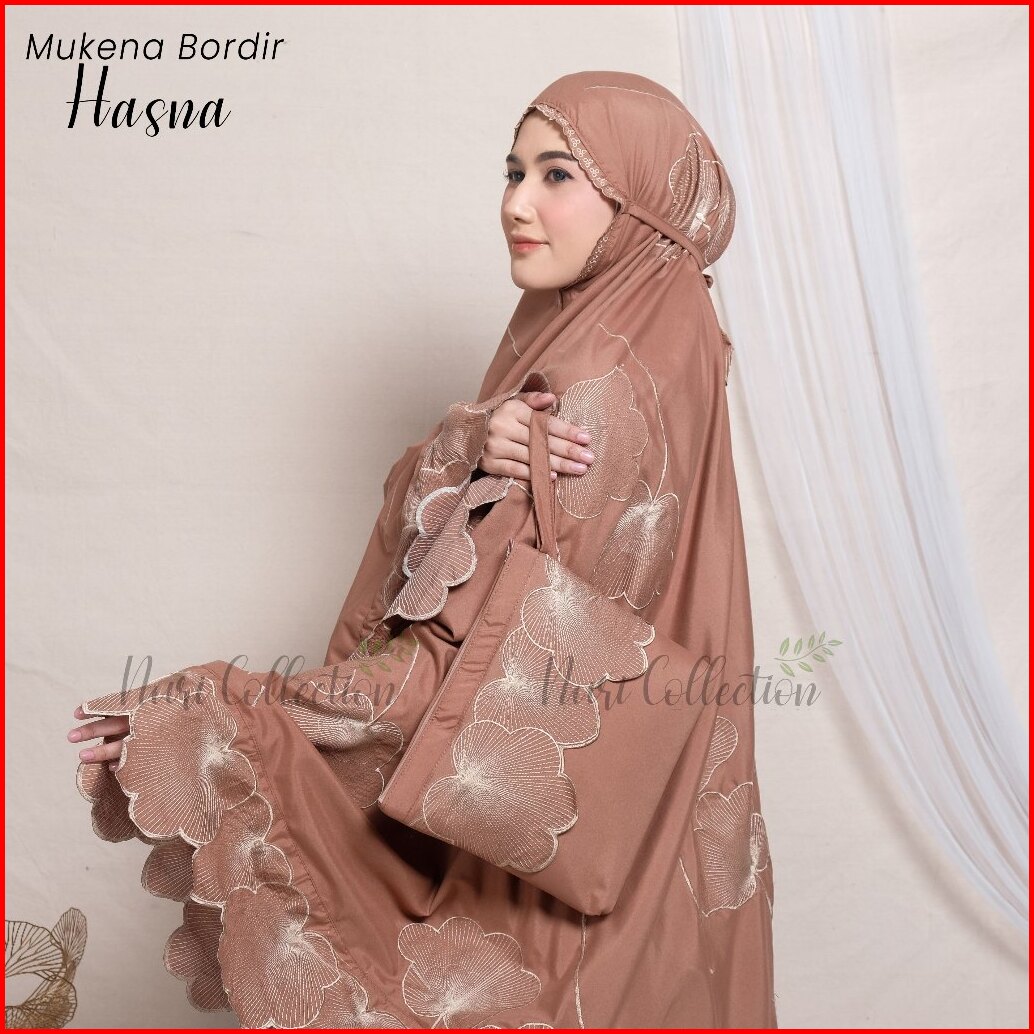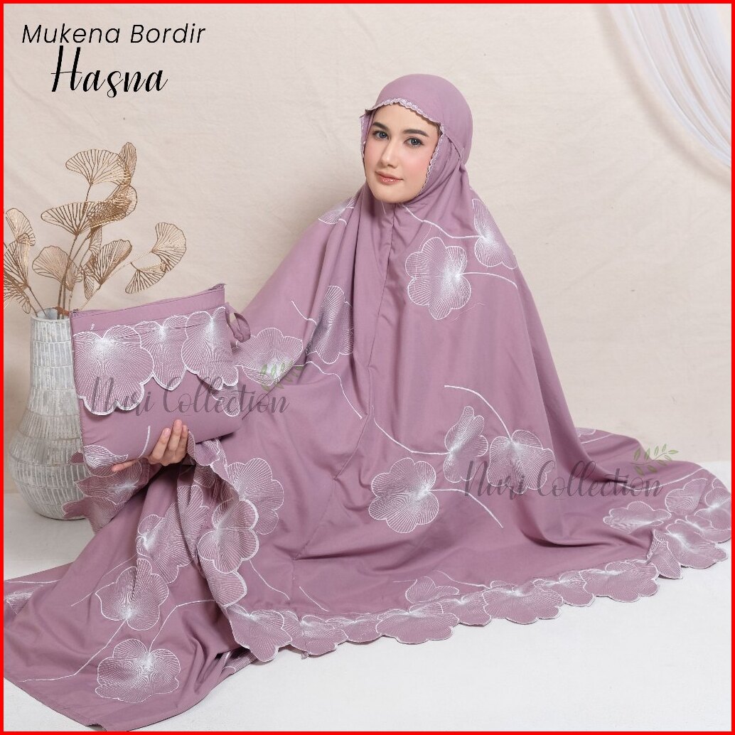 Mukena Dewasa Hasna Resleting 2in1 Full Bordir Jumbo Katun Mikro Premium