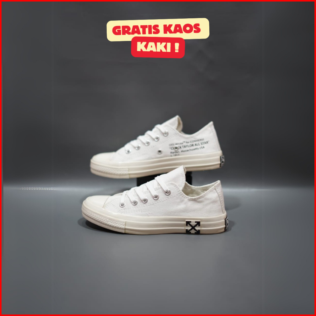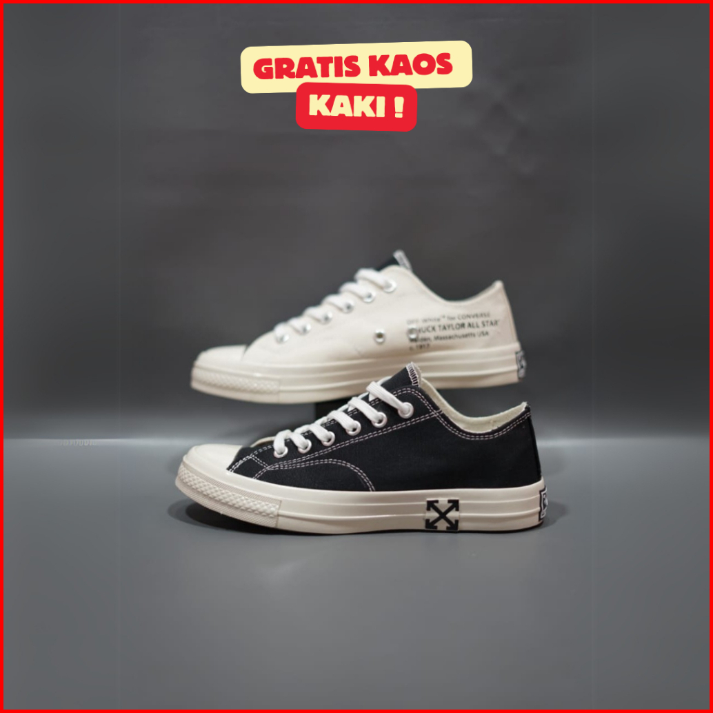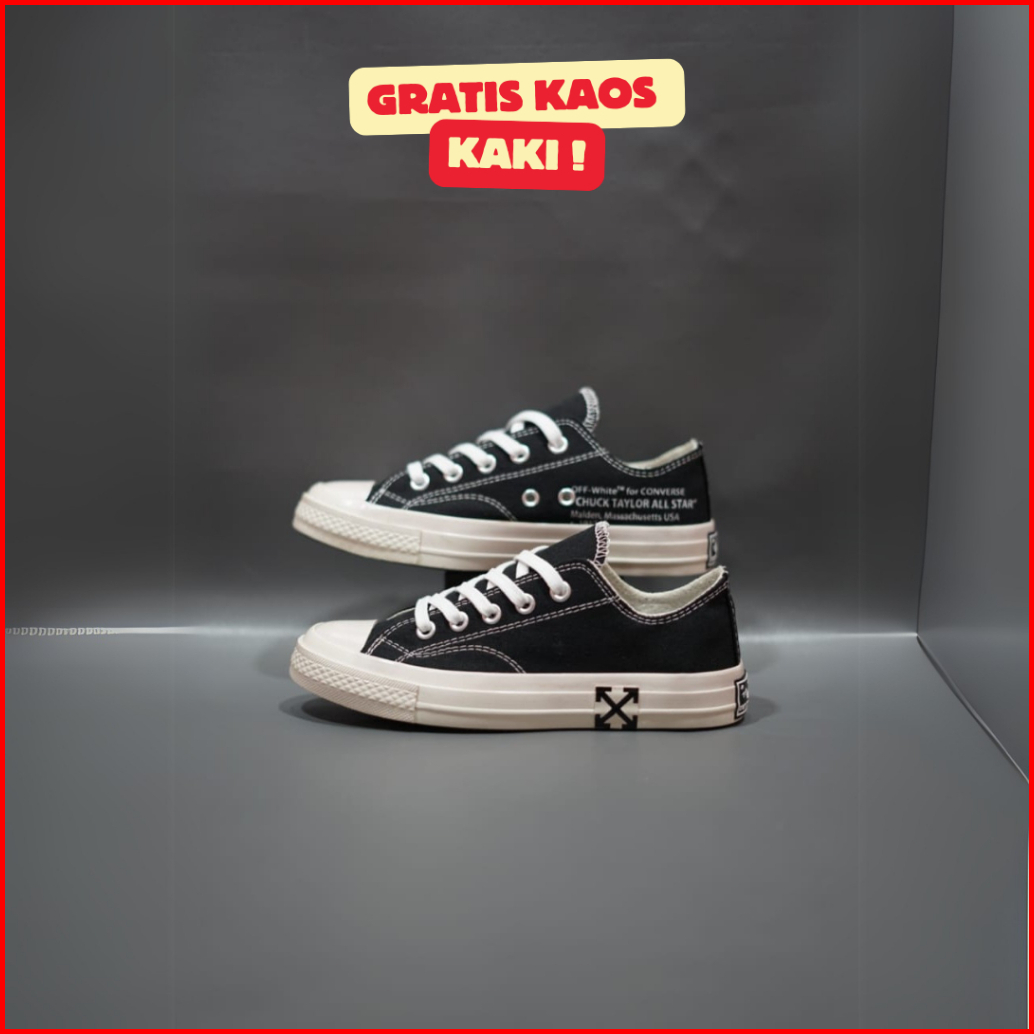 Sepatu Converse 70s Low X Ofwhite Full Black Sol Glossy Grade Original 37-43