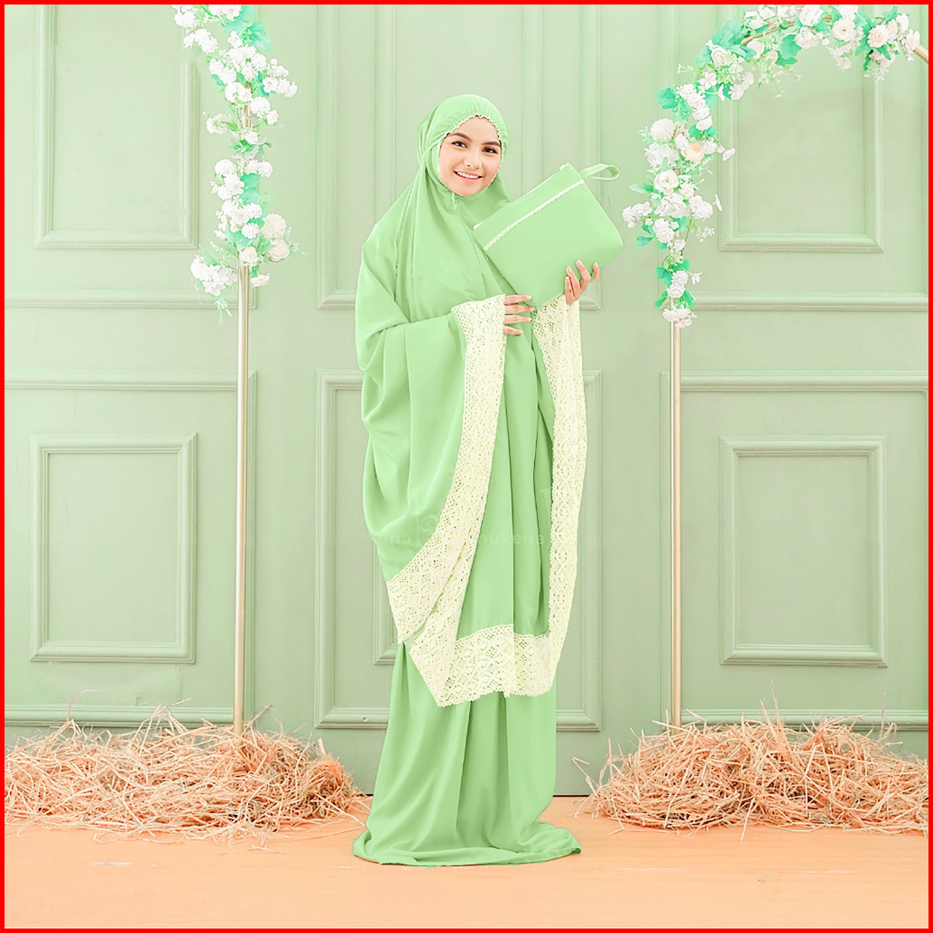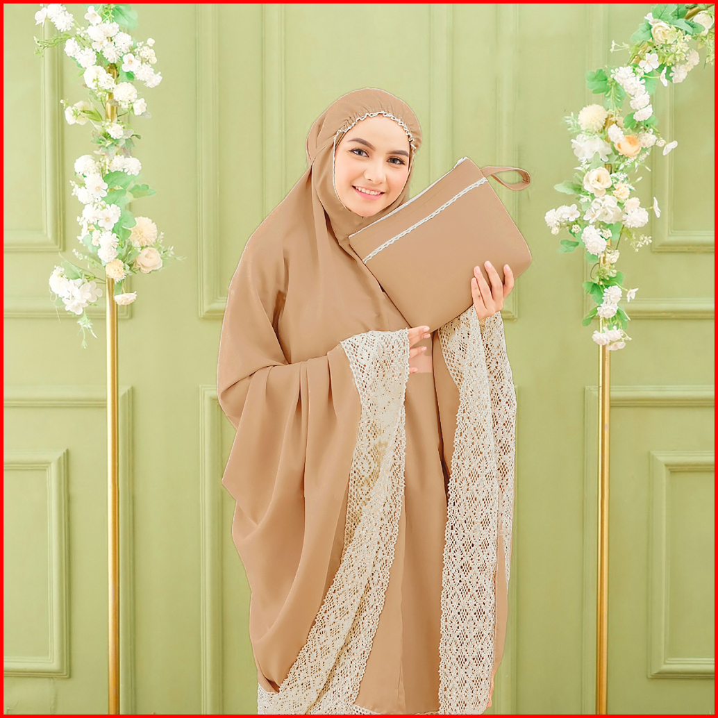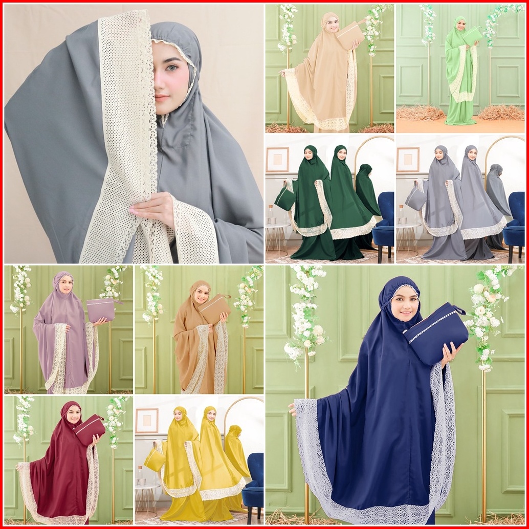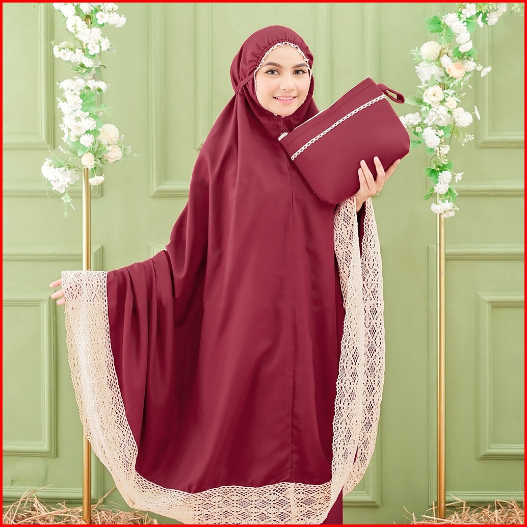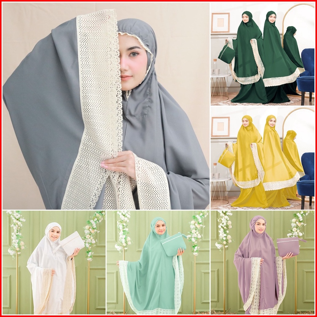 Mukena Fatima Dewasa Jumbo Free Tas Cantik Bahan Katun Micro Renda Rajut 13 Cm Mukenah Grosir