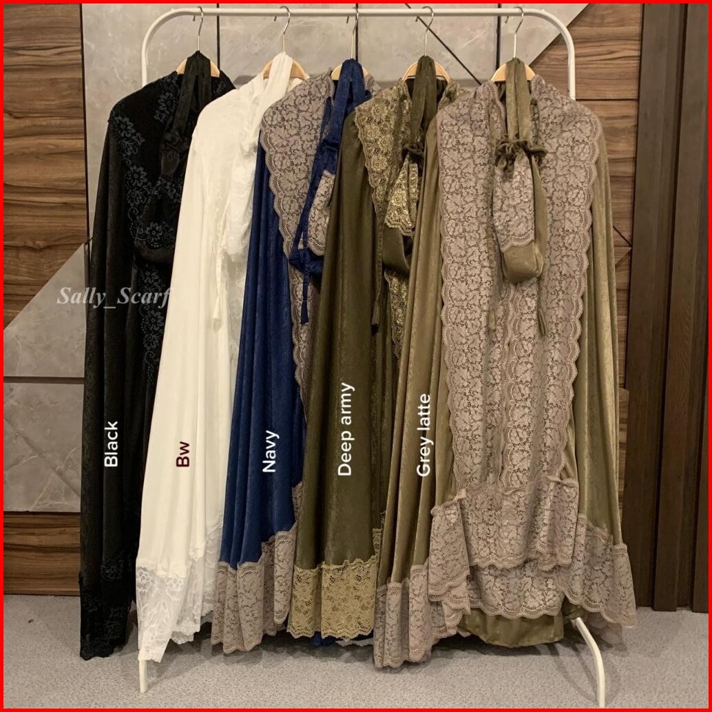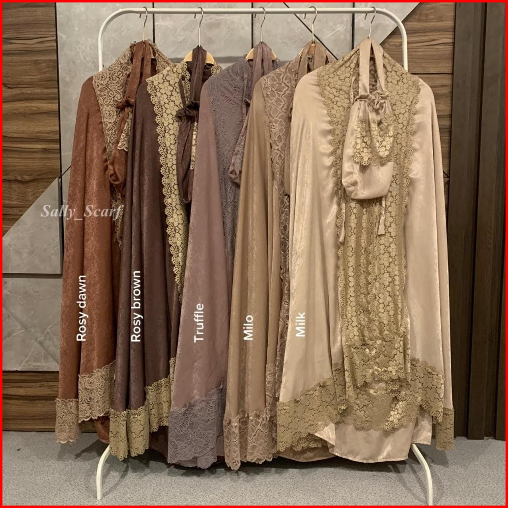 Mukenah Plain Sarqiya Renda Santorini Silk Ukuran Jumbo Lembut Mewah