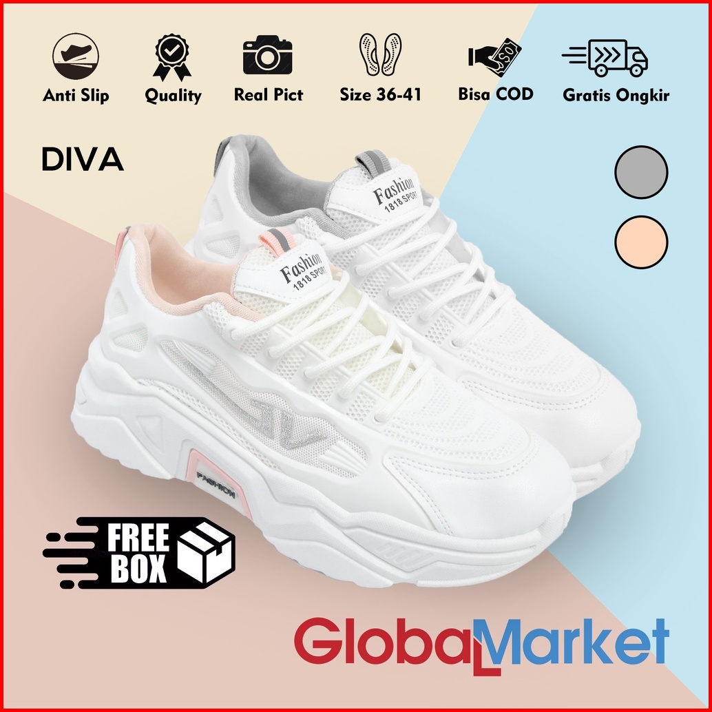 Globalmarket Free Kotak Box Diva Sepatu Olahraga Wanita Premium Sneakers Gym Lari Cewek Korea Import Quality Size 36 Sam