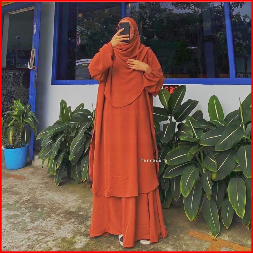 Sabira One Set Long Tunik Set Rok Crincle Airplow Oneset Muslimah Tunik Rok Size L Xl Xxl Jumbo