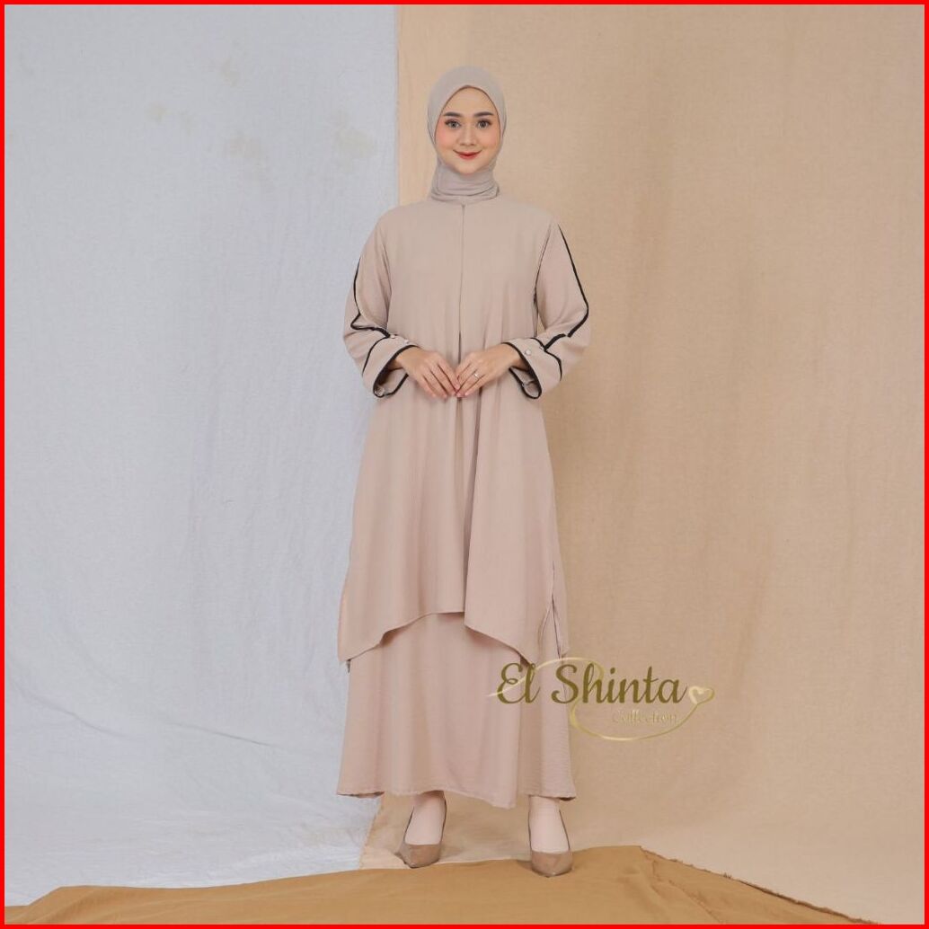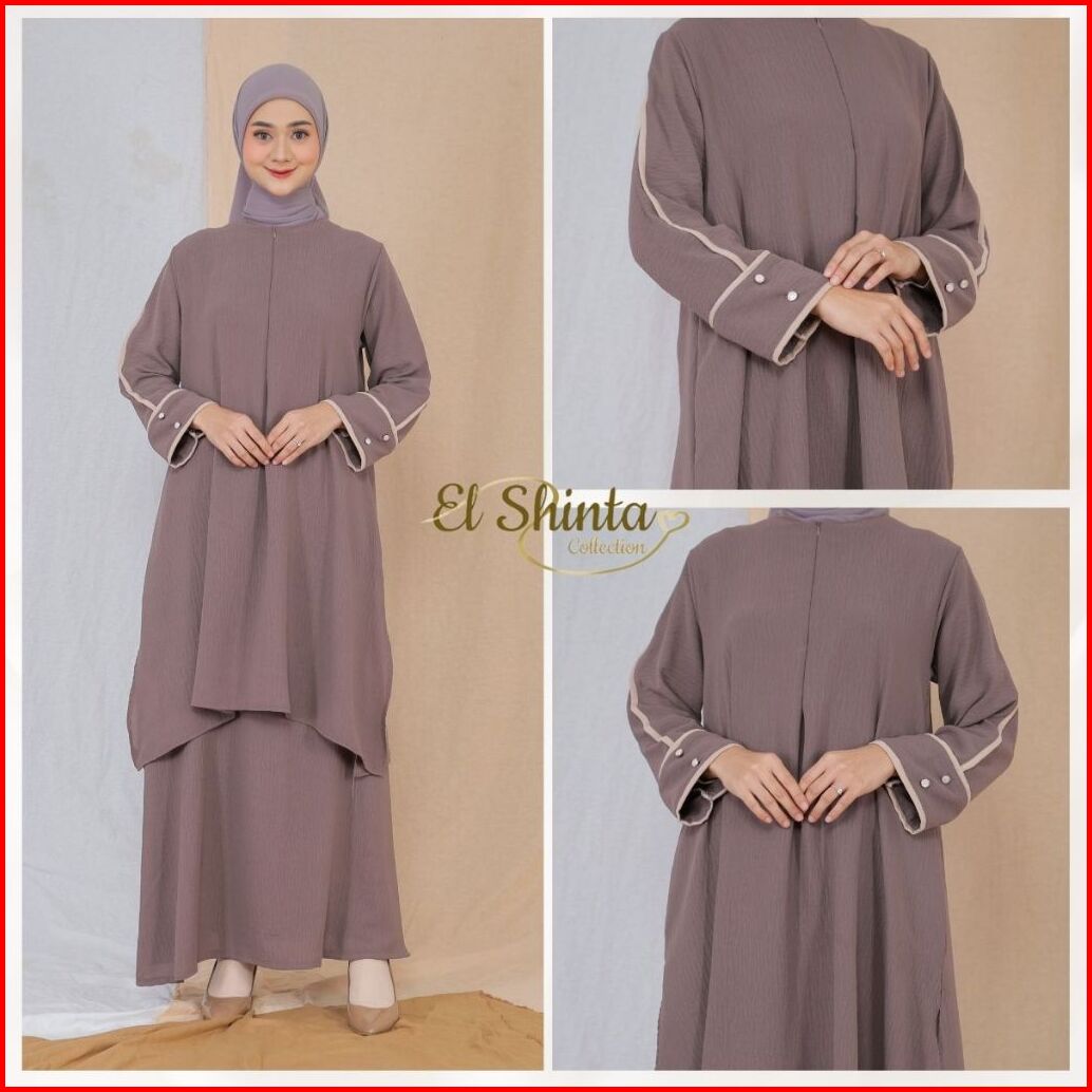Oneset Abaya Fatiya Set Rok Tunik Wanita Muslim Terbaru Jumbo Crinkle Airflow Size M L Xl Xxl