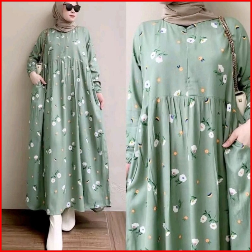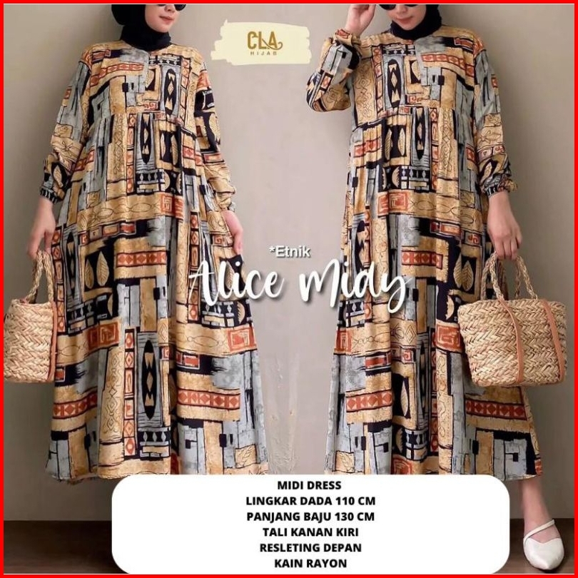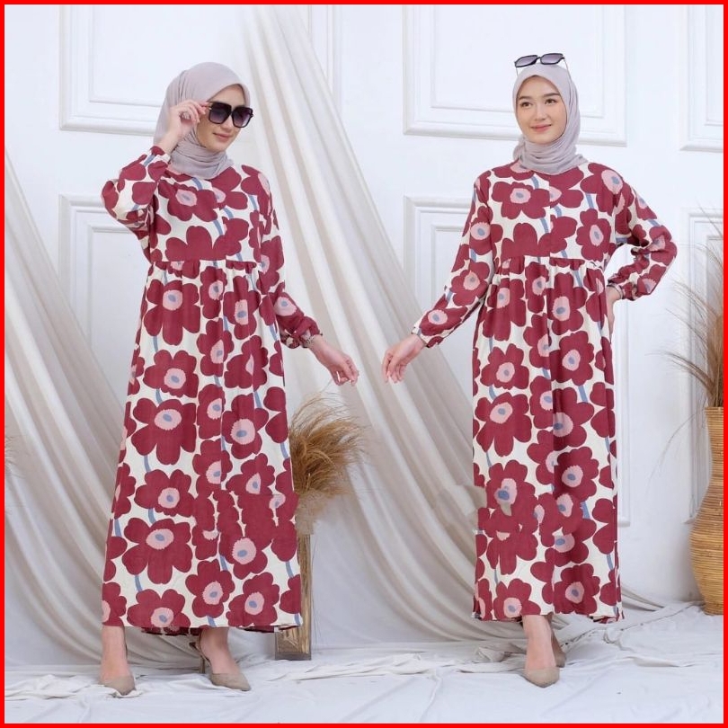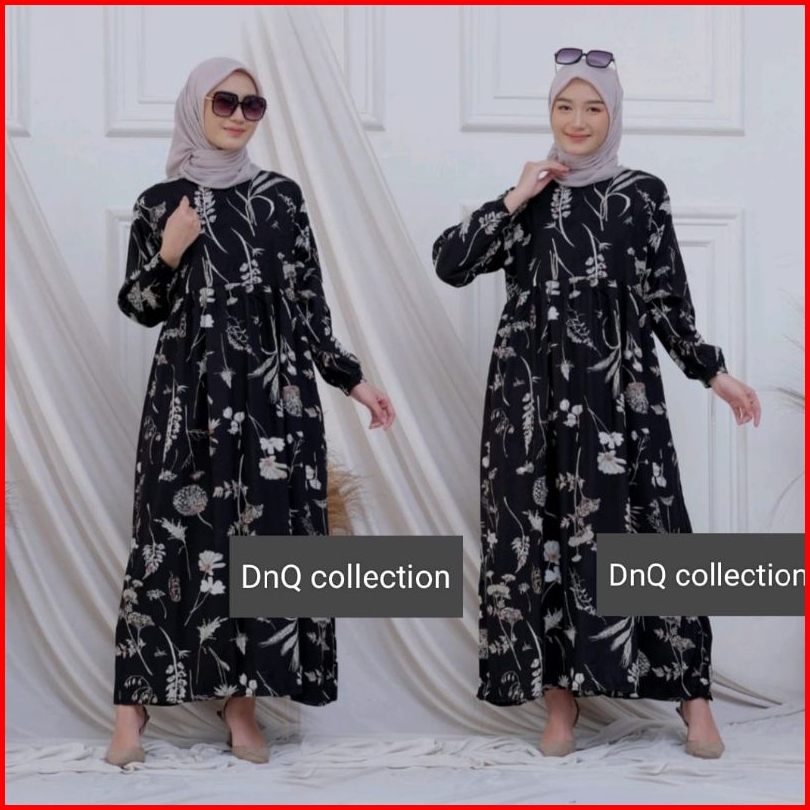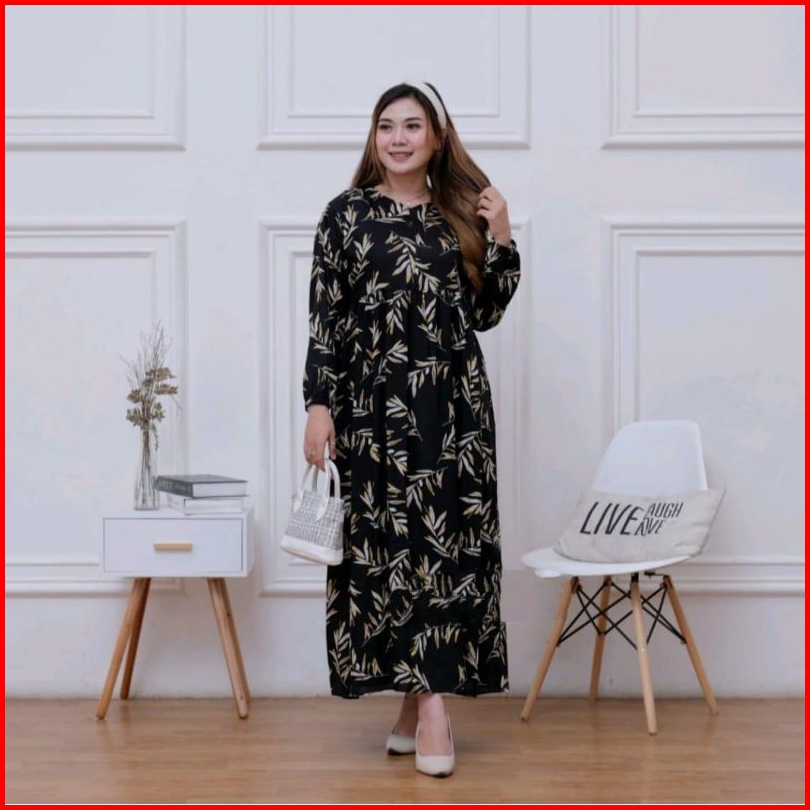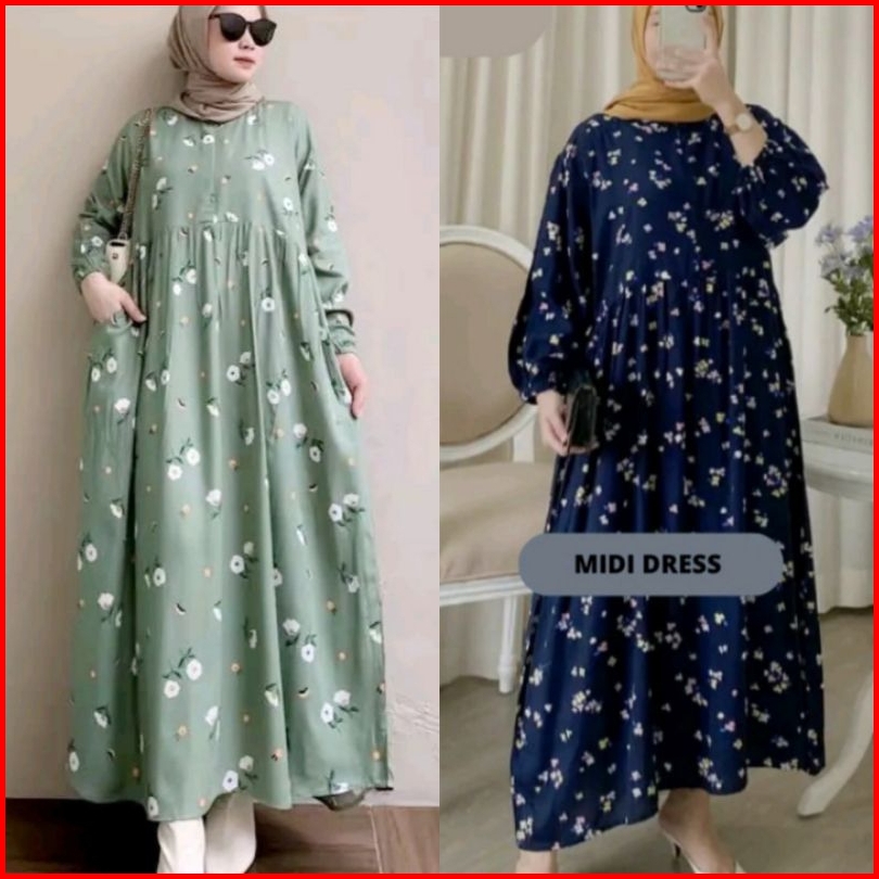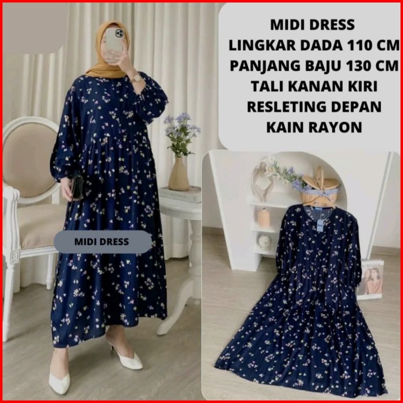 Midi Bunga Tosca, Midi Etnik, Kapas Hitam, Bunga Kecil Navi, Daun Bambu, Raflesia Maroon, Mawar Merah