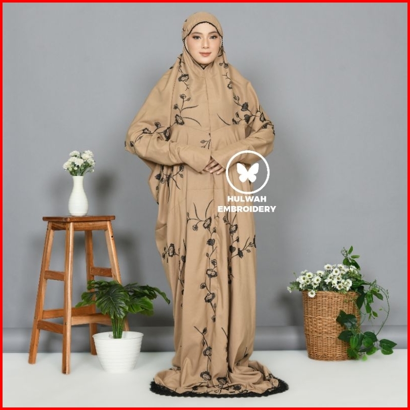 Mukena Terusan Bahan Katun Adem Premium Bordir Bunga Zaitun