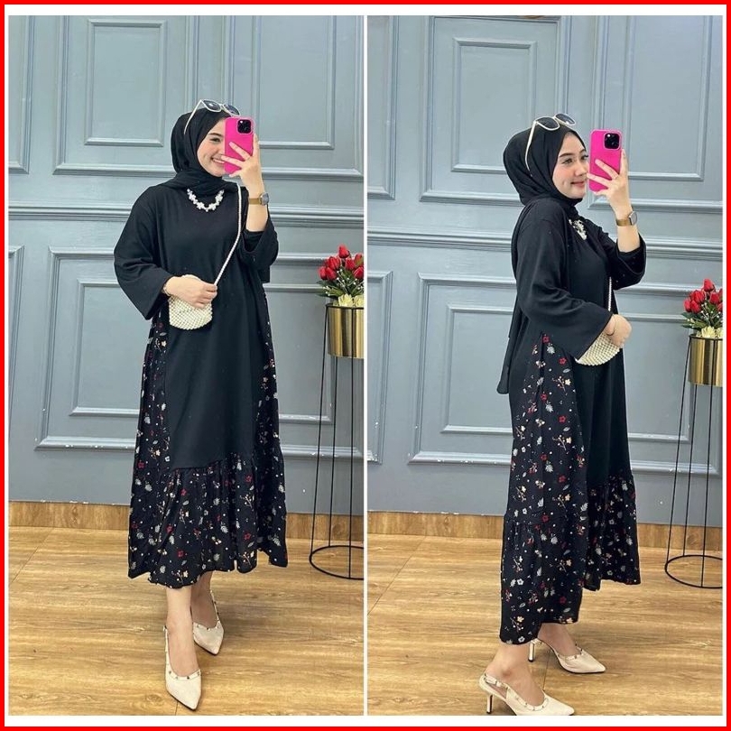 Ichana Midi Dress Wanita Knit Mix Katun Motif Jizzy Dress Premium