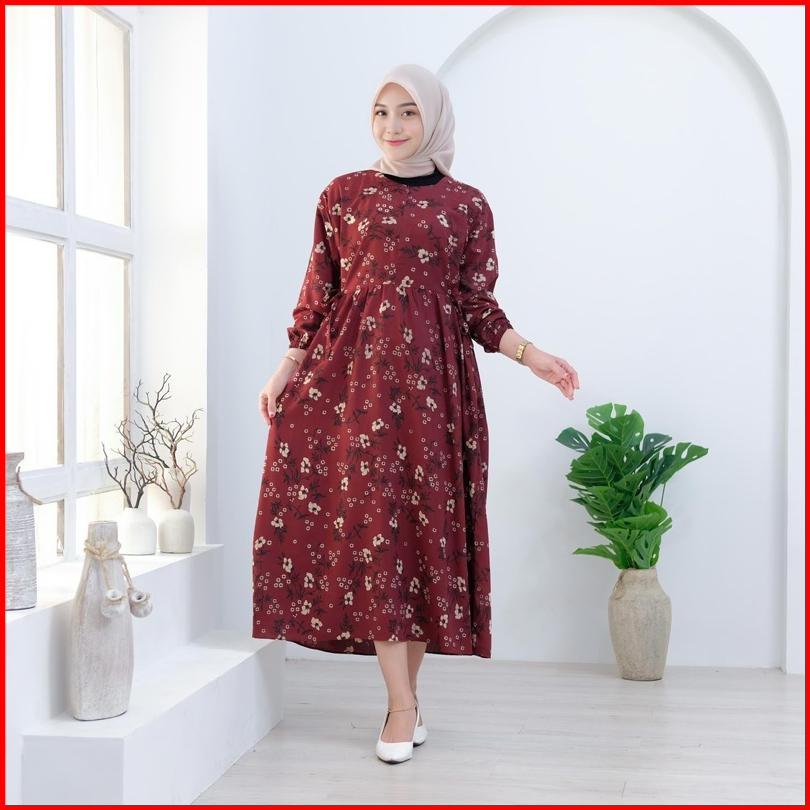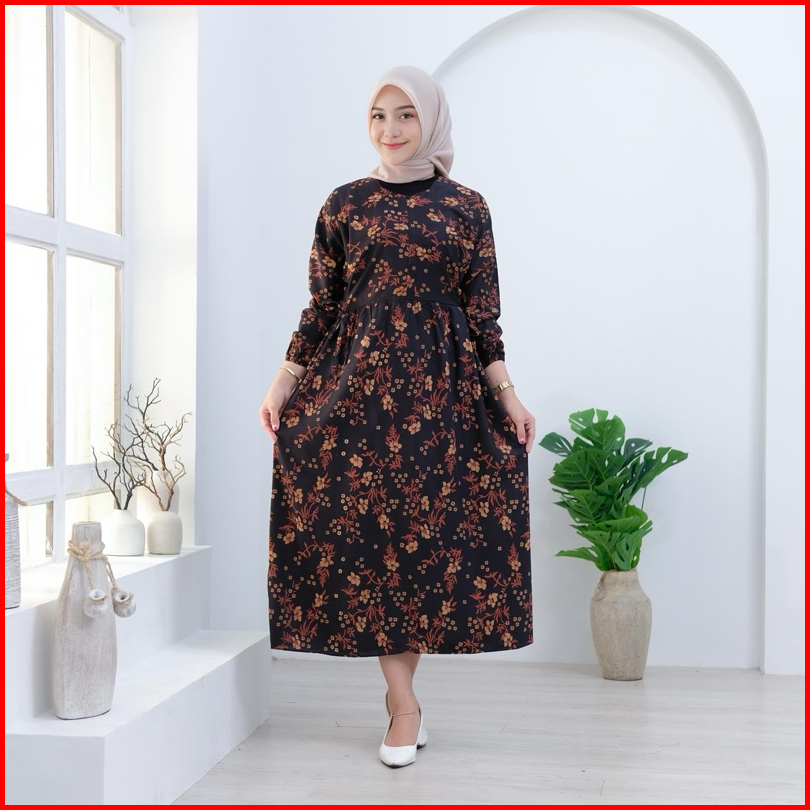 Midi Dress Miranda Busui Frendly Lengan 3 4 Dress Busui Dress