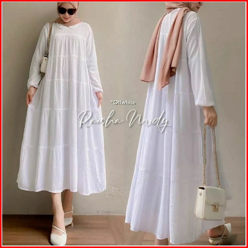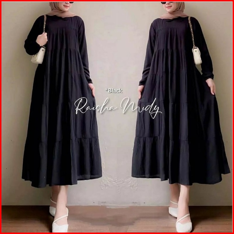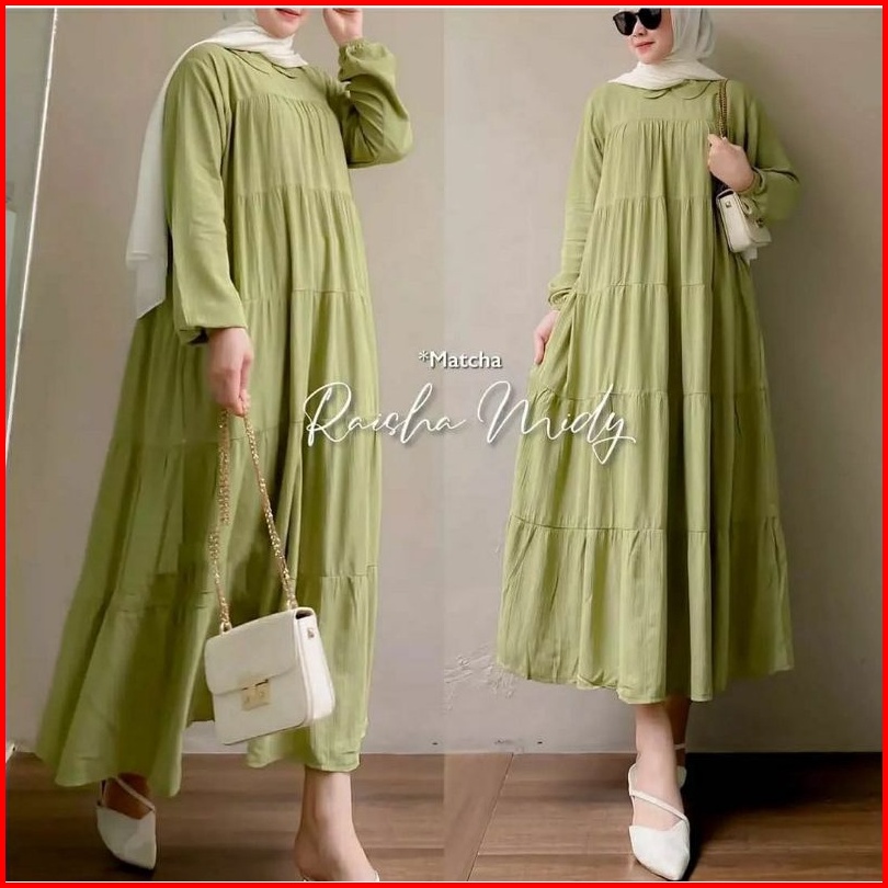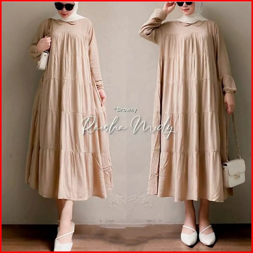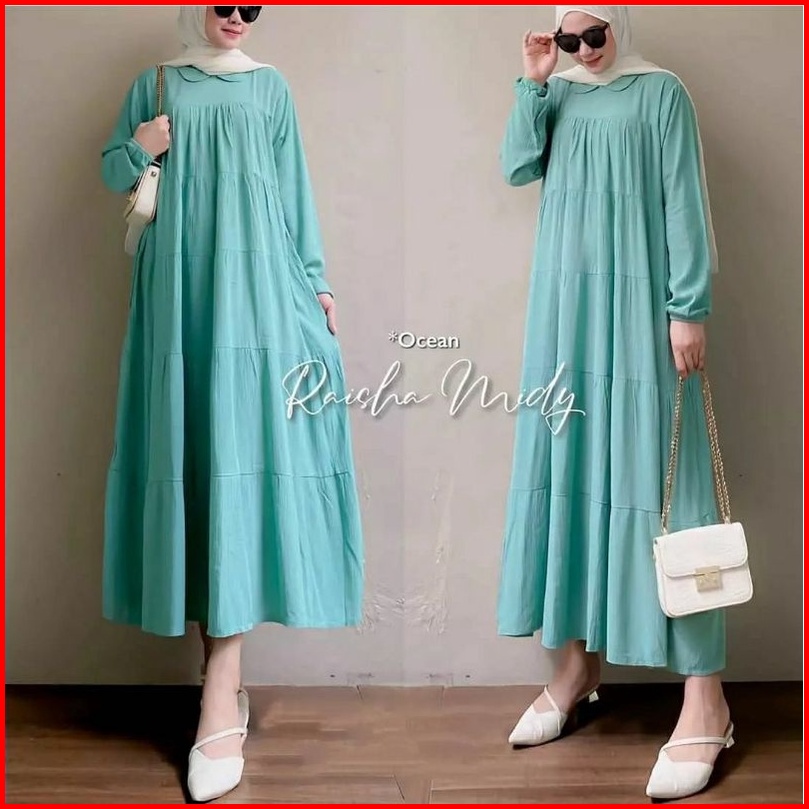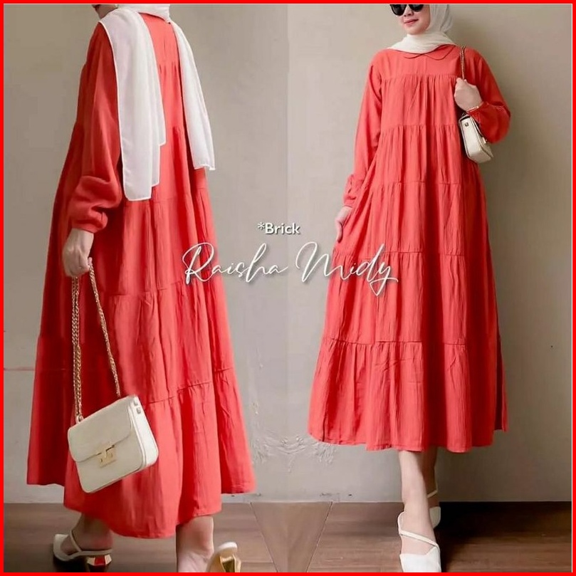 Raisha Midi Dress Long Tunik Bahan Katun Rayon Twill Premum Dres Polos Model Wanita Muslim Hijab