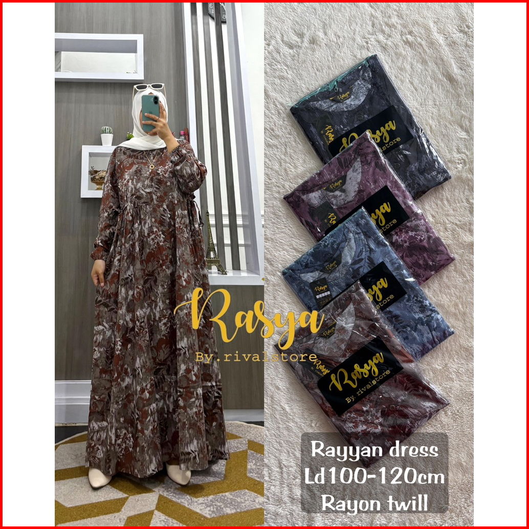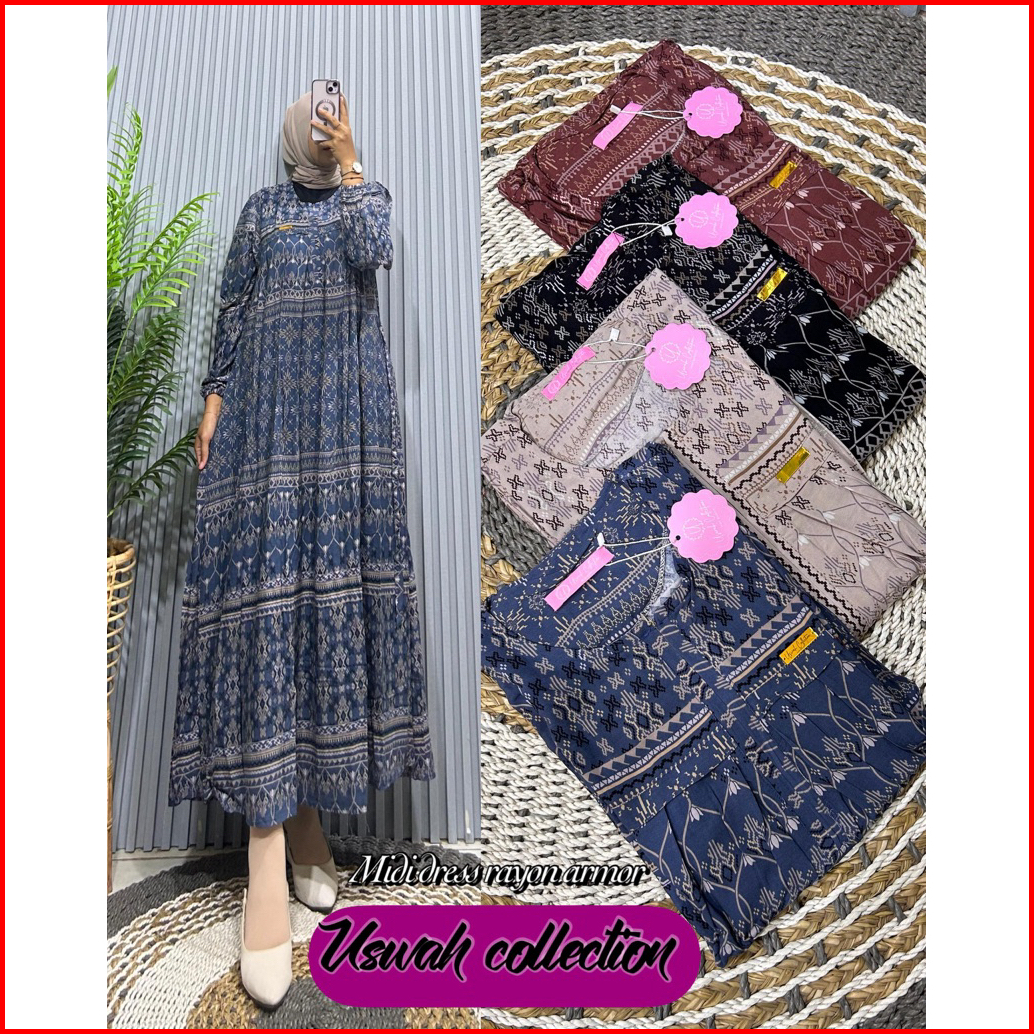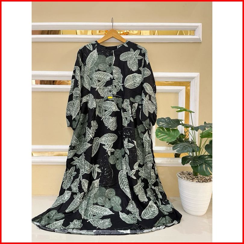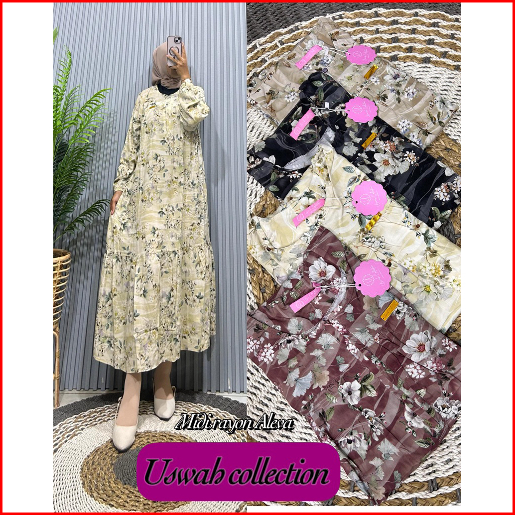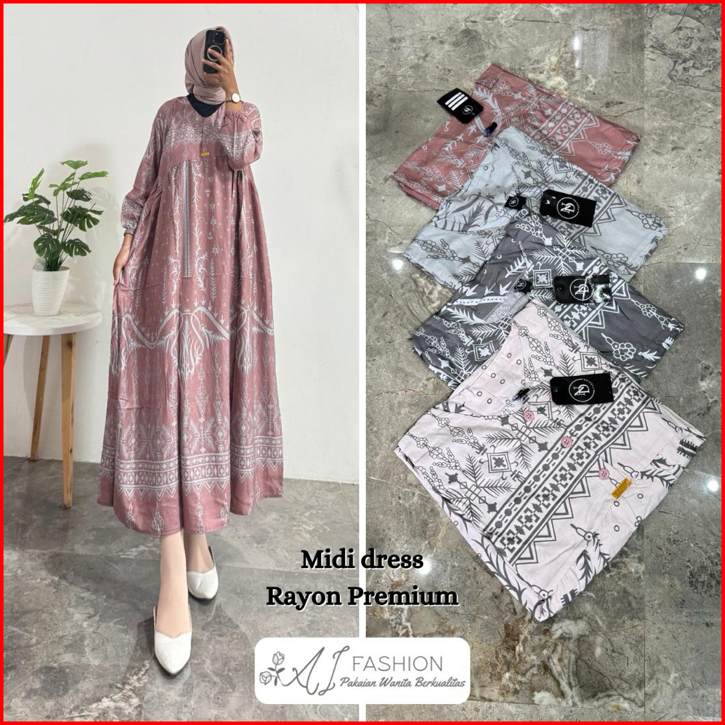 Midi Dress Rayon Motif Bunga Tulip Ld 120 Dress Korean Style
