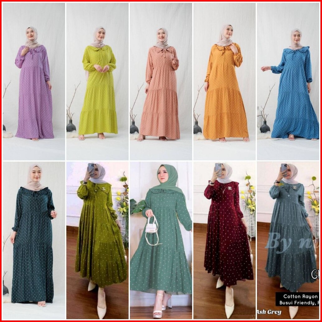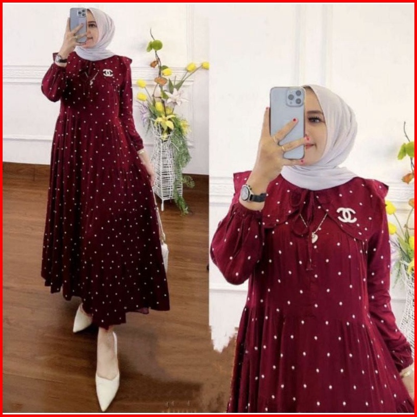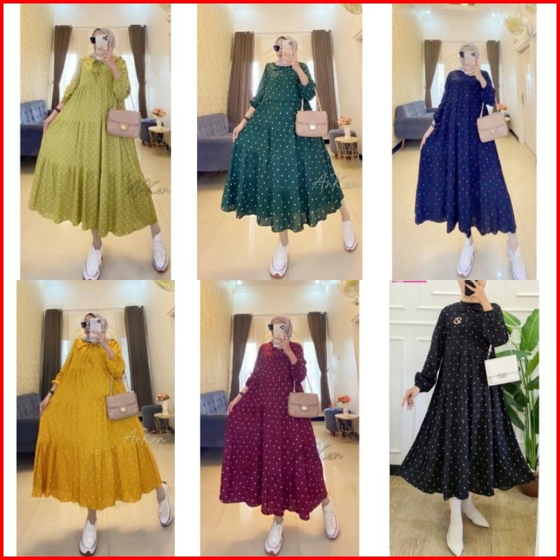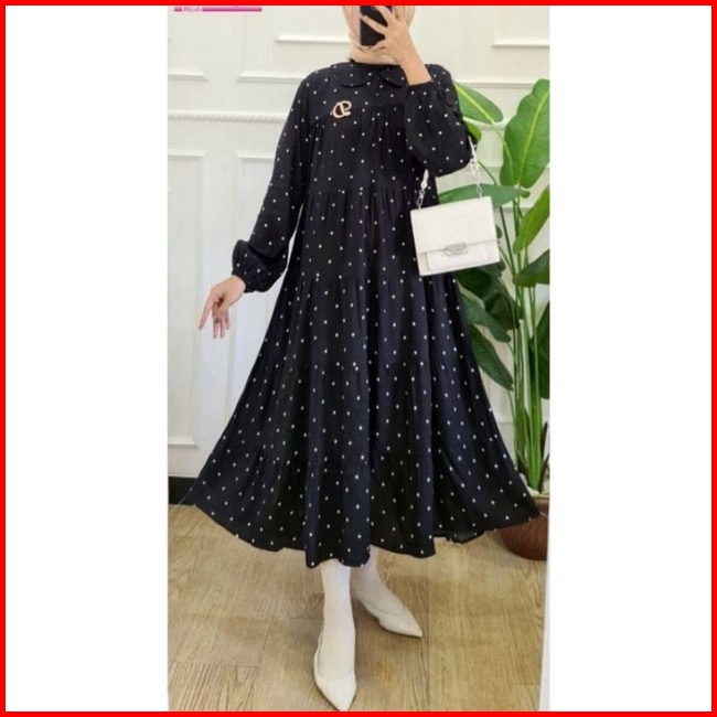 Dress Kania Gamis Rampel Motif Polkadot Midi Dress Polka Kekinian Terbaru Gamis Lebaran Chiki Midi Dress Polkadot Jumbo
