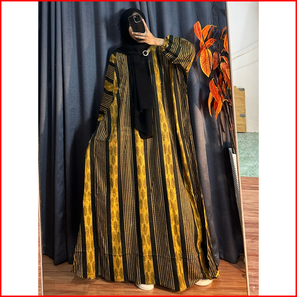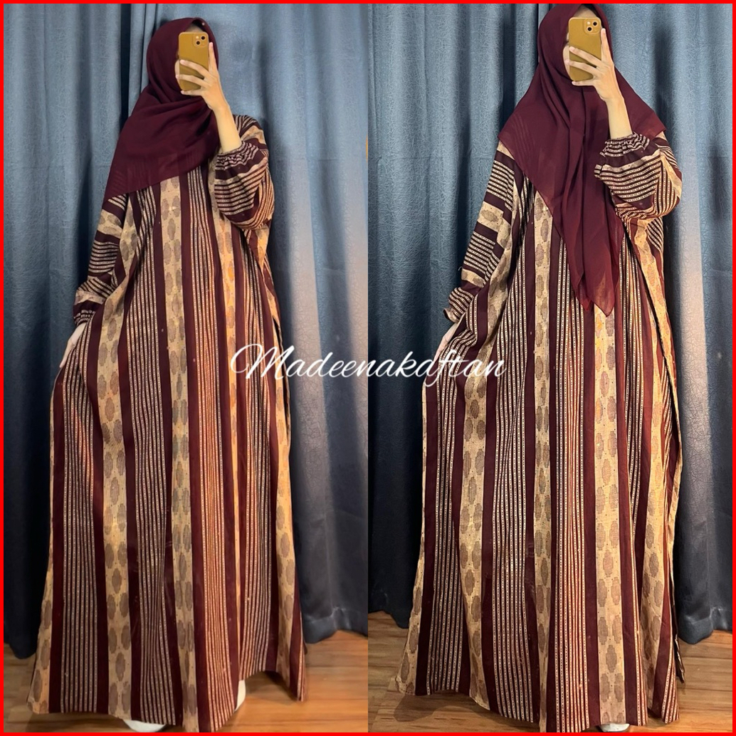 Kaftan Motif Jasmin Etnik Ld 180 Cm Bahan Rayon Adem Nyaman Busui Gamis Dress Panjang Abaya Wanita Muslim Cantik Remaja