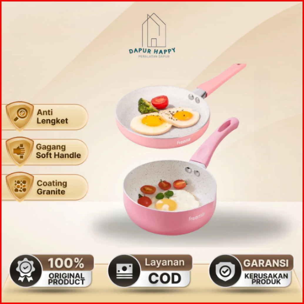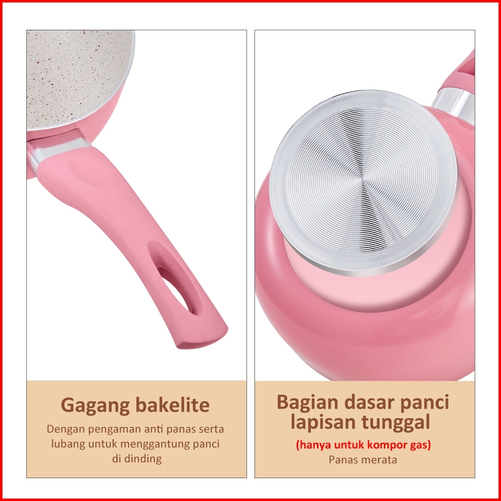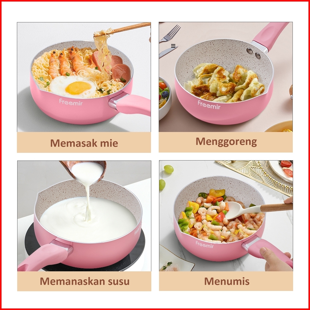 Kombo Pink Freemir Panci Susu 16cm Teflon 16cm Wajan Tumis Goreng Panggang
