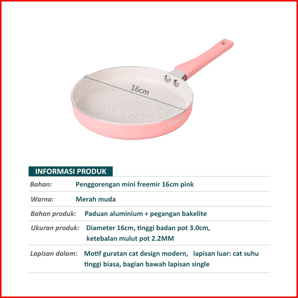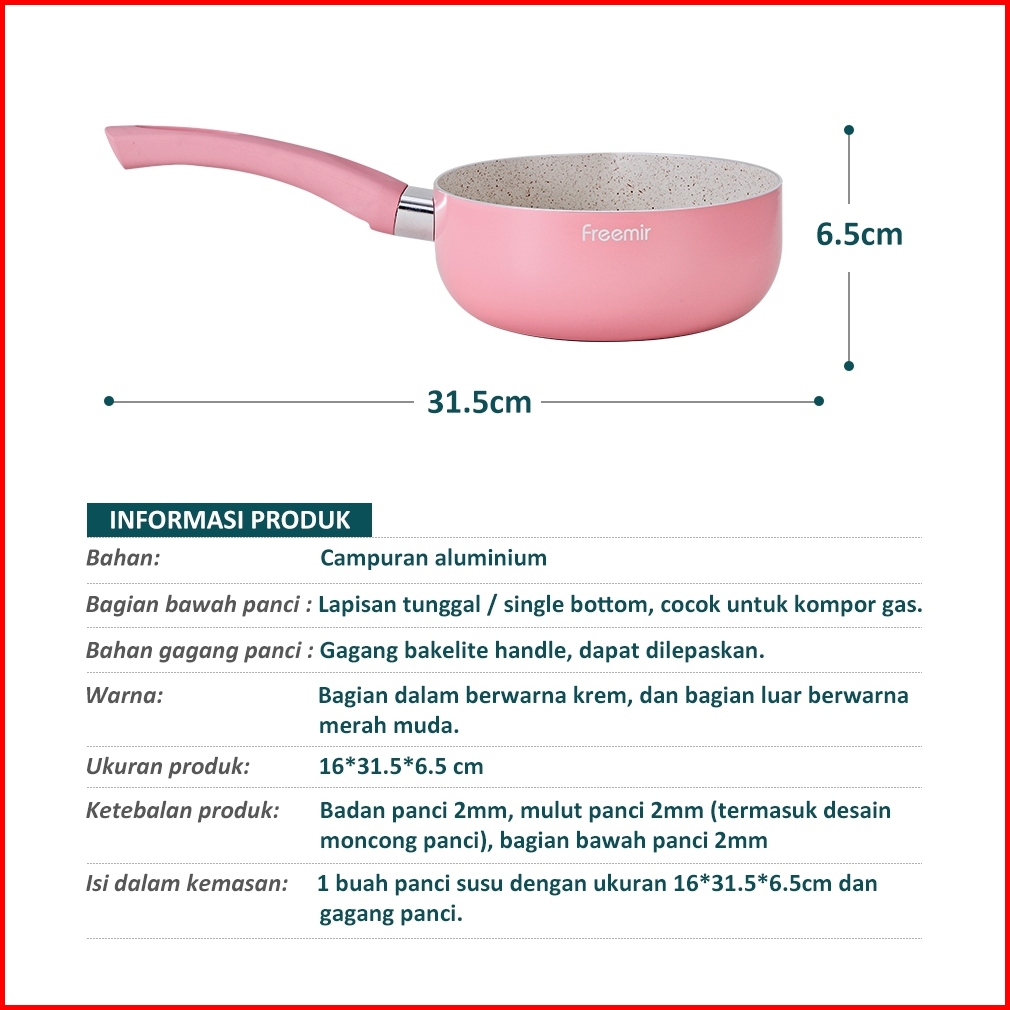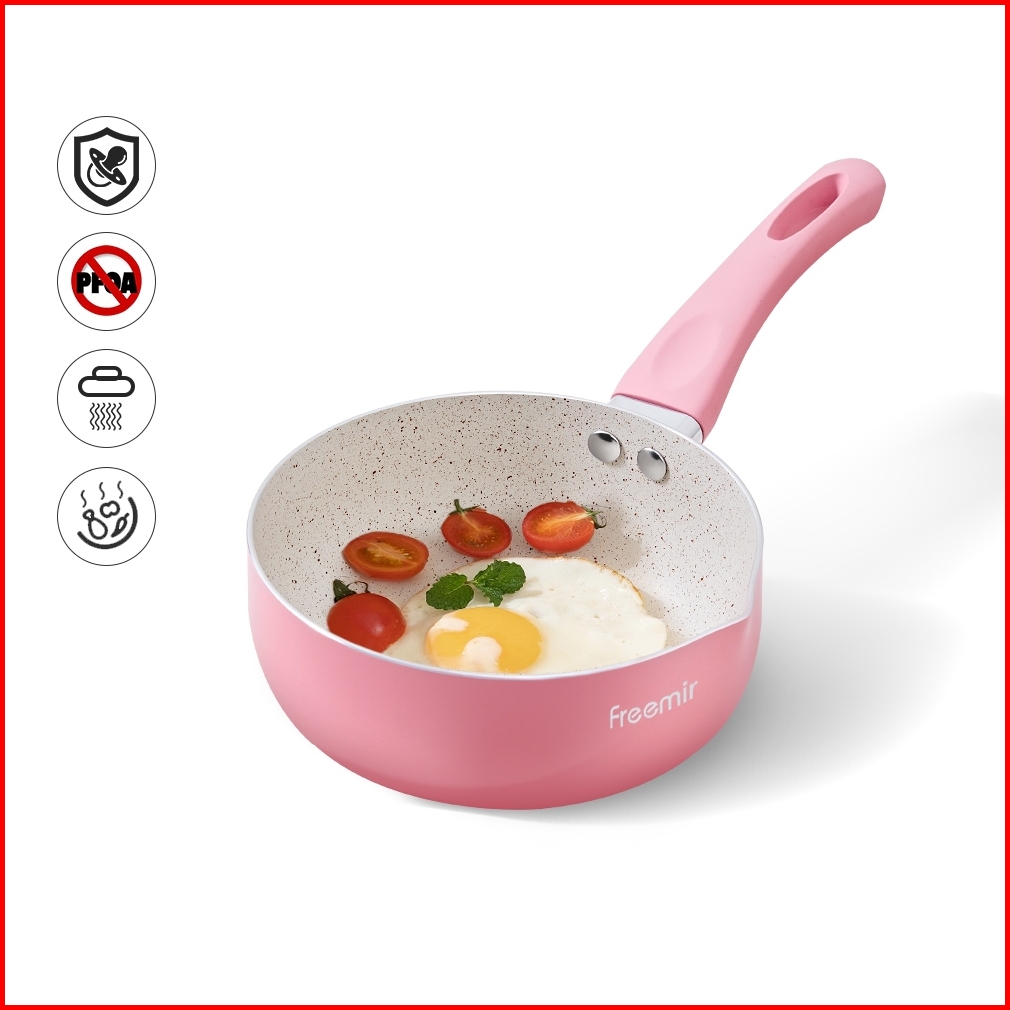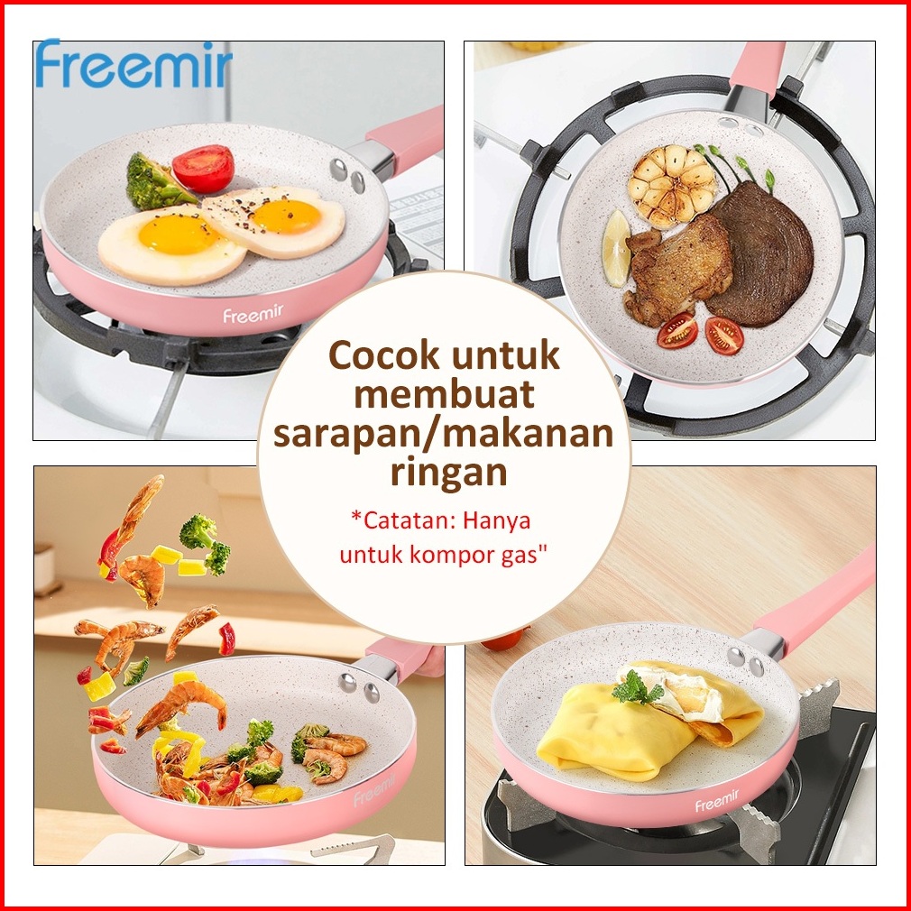 Kombo Pink Freemir Panci Susu 16cm Teflon 16cm Wajan Tumis Goreng Panggang