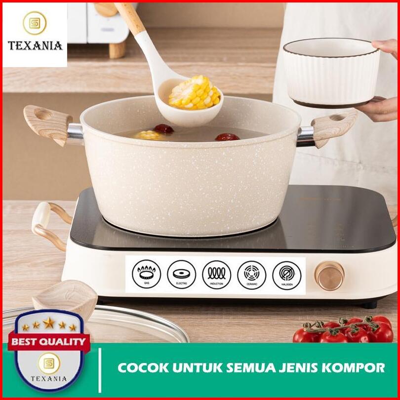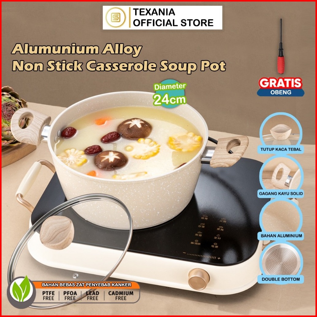 Hot Sale Texania Panci Soup Premium Aluminium Alloy Gagang Kayu Anti Lengket Diameter 24cm Free Obeng