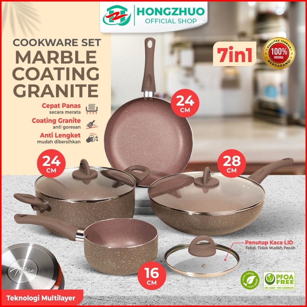 Tifale By Hongzhuo Brown Granite Granit Coklat Antilengket Peralatan Masak Dapur 7pcs Untuk Semua Kompor Panci Wajan Pen