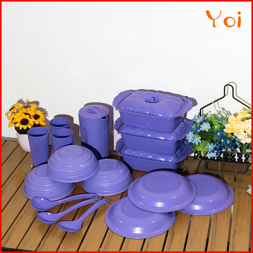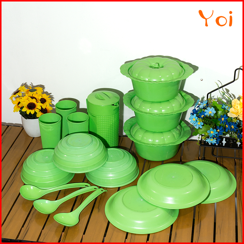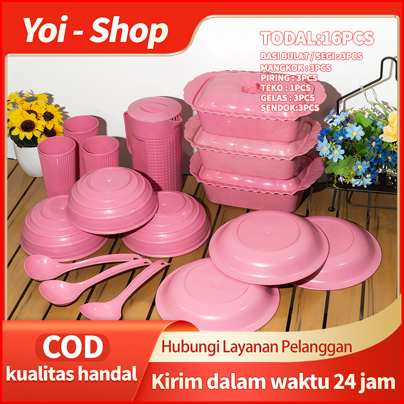 Yoi - Set 16 Pcs Set Peralatan Makan Set Piring Mangkuk Teko Dan Gelas Cocok Untuk Acara Makan Bulat Yang Spesial Sendok