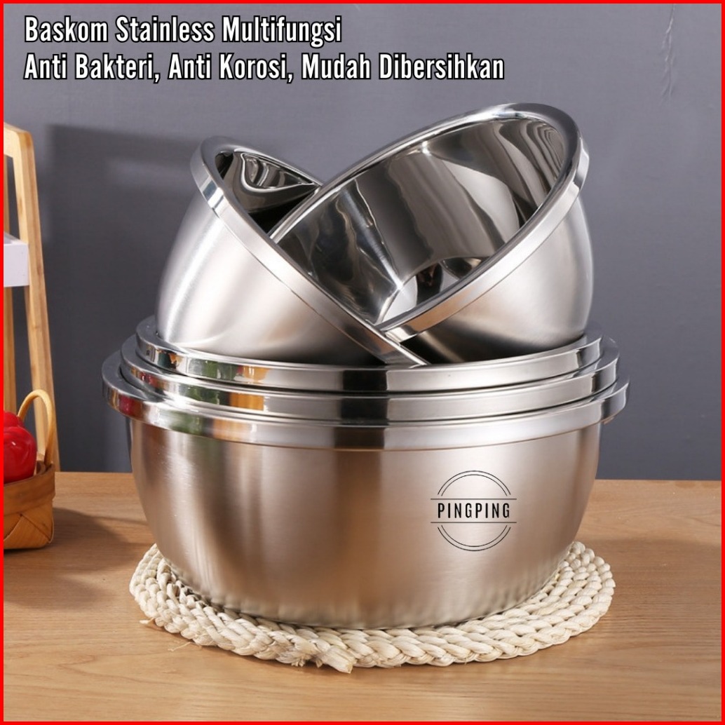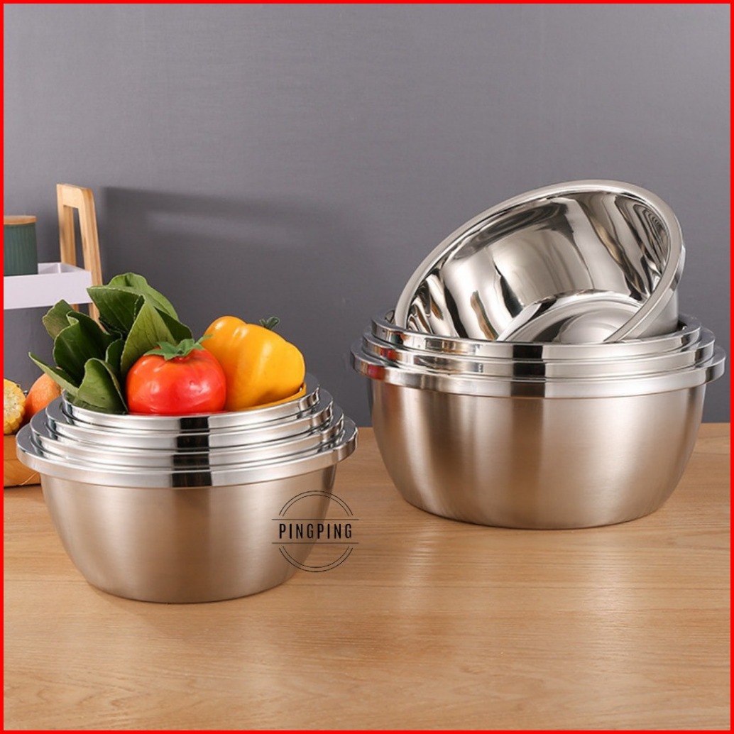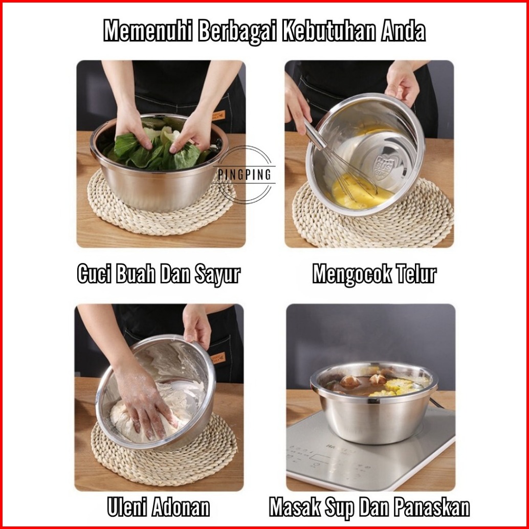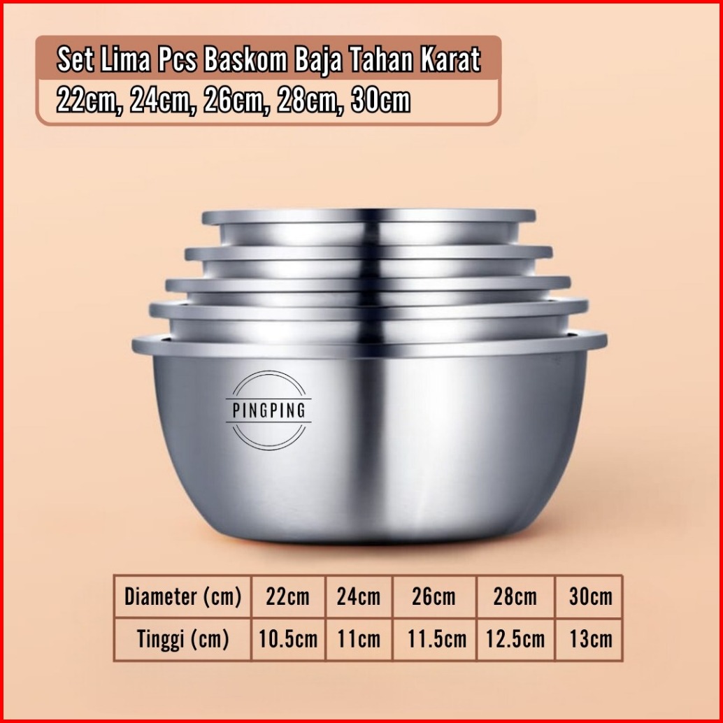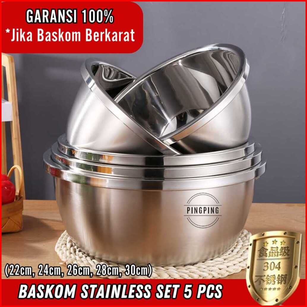 Baskom Set Stainless Tebal 5in1 Wadah Cuci Beras Buah Sayur Set Baskom Mangkuk Premium Isi 5 Pcs Tebal Tinggi Stainless
