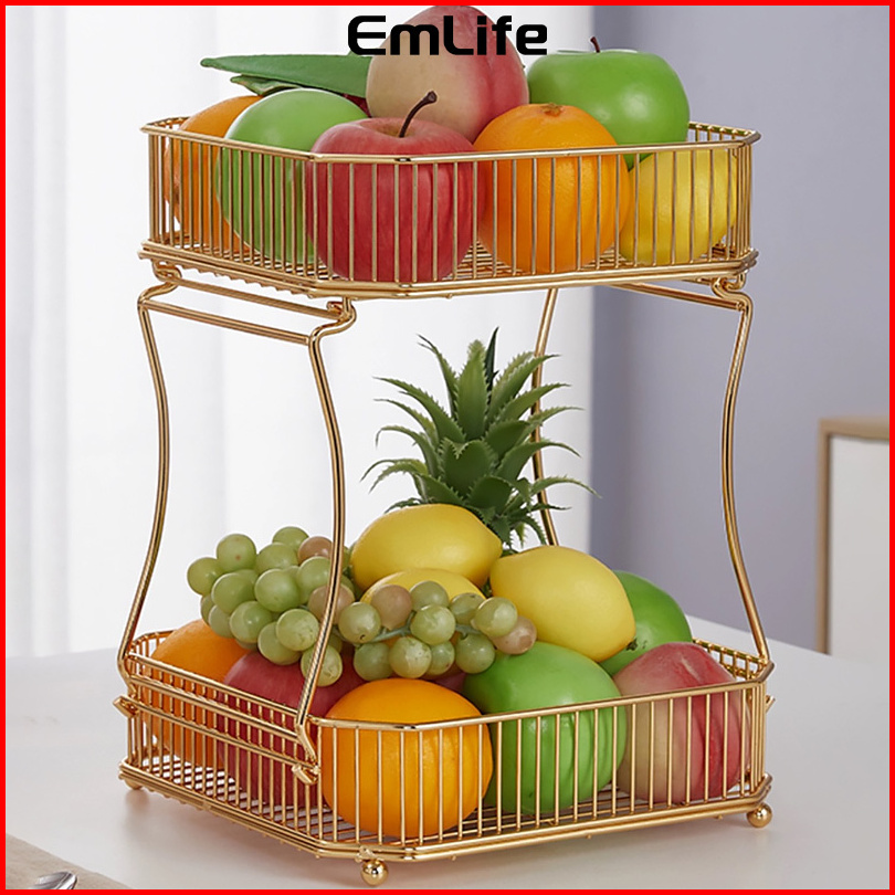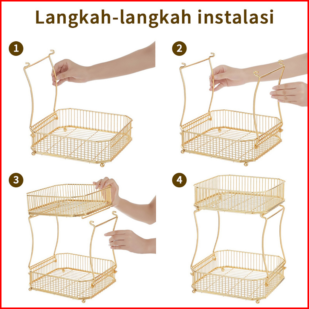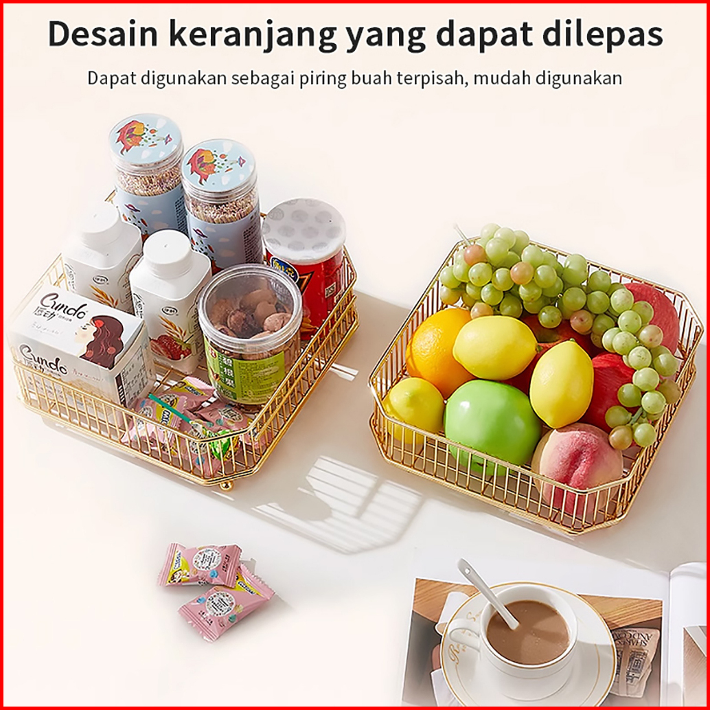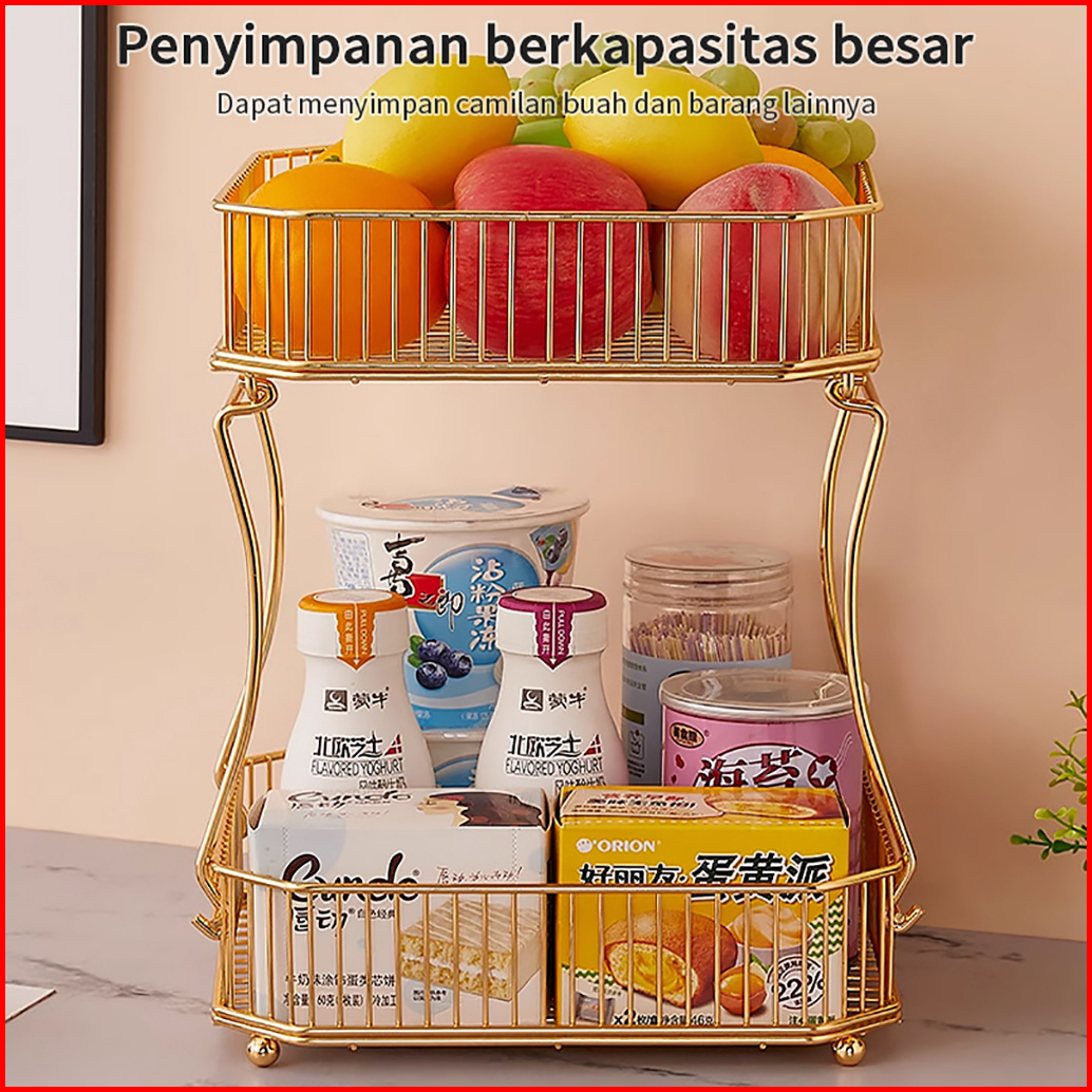 Keranjang Serbaguna Hitam 2 Tingkat Nampan Buah Tempat Minuman Rak Botol Tempat Buah Wadah Buah Nampan Buah