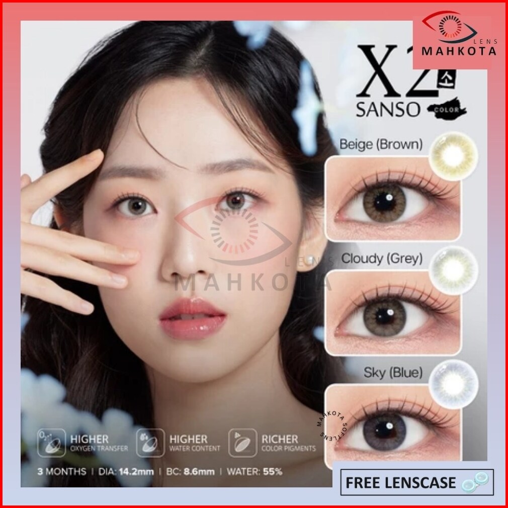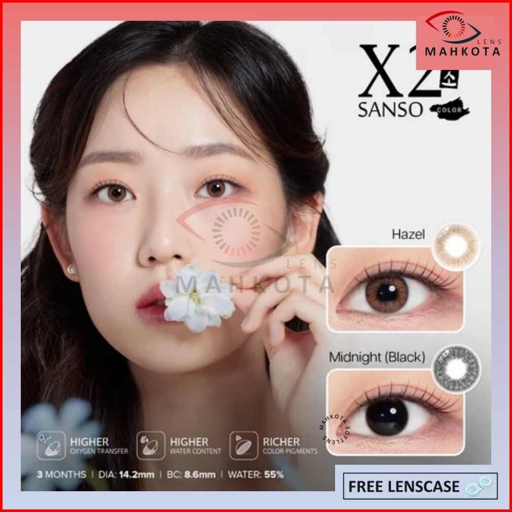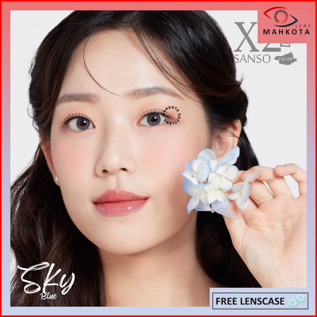Softlens X2 Sanso Color Blue Normal Minus -0.50 Sd -6.00 Premium Soflens Dia 14.2mm Lenscase