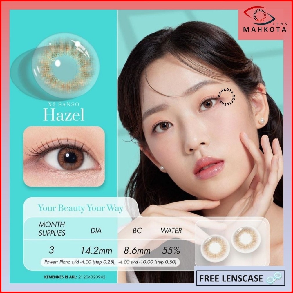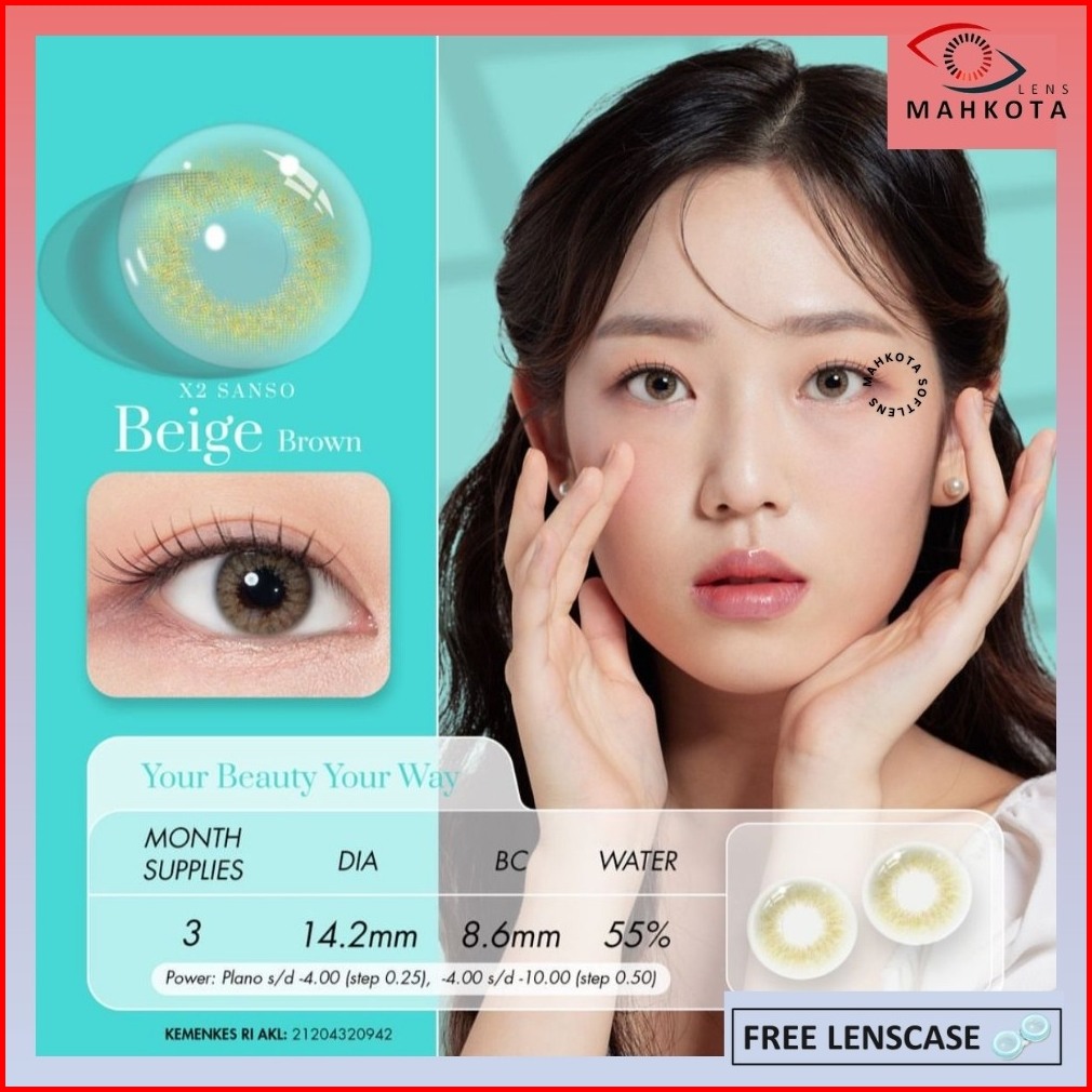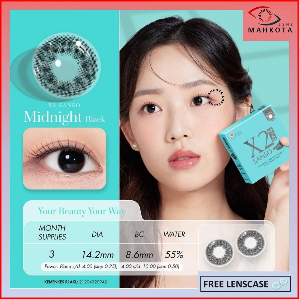 Softlens X2 Sanso Color Blue Normal Minus -0.50 Sd -6.00 Premium Soflens Dia 14.2mm Lenscase