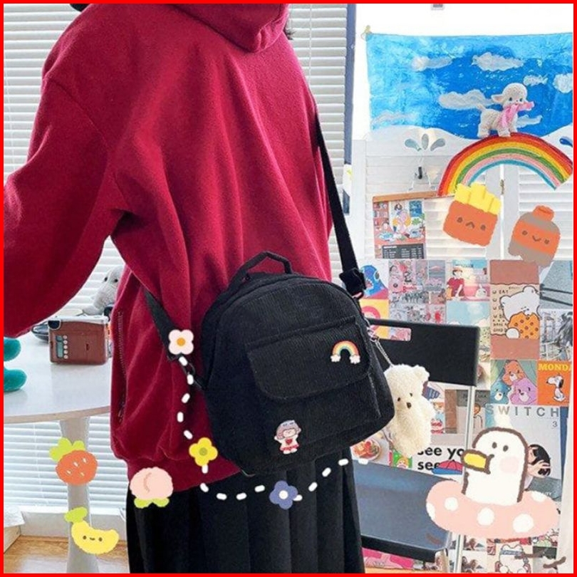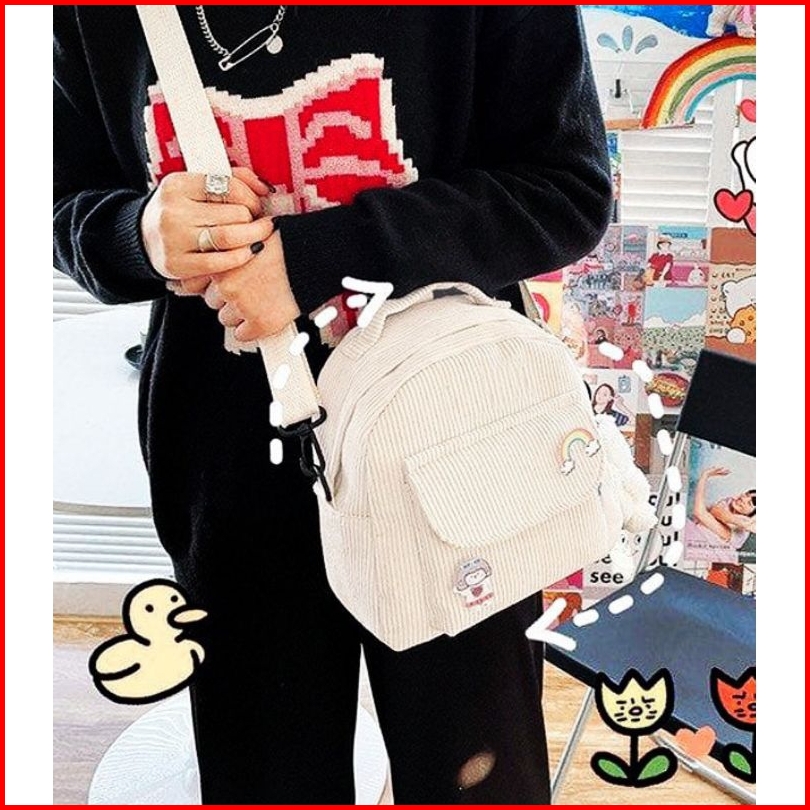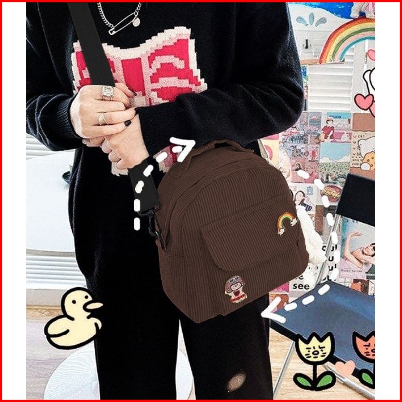 Tas Ransel Dan Selempang Mini Cambrela Tas Multifungsi Wanita Corduroy