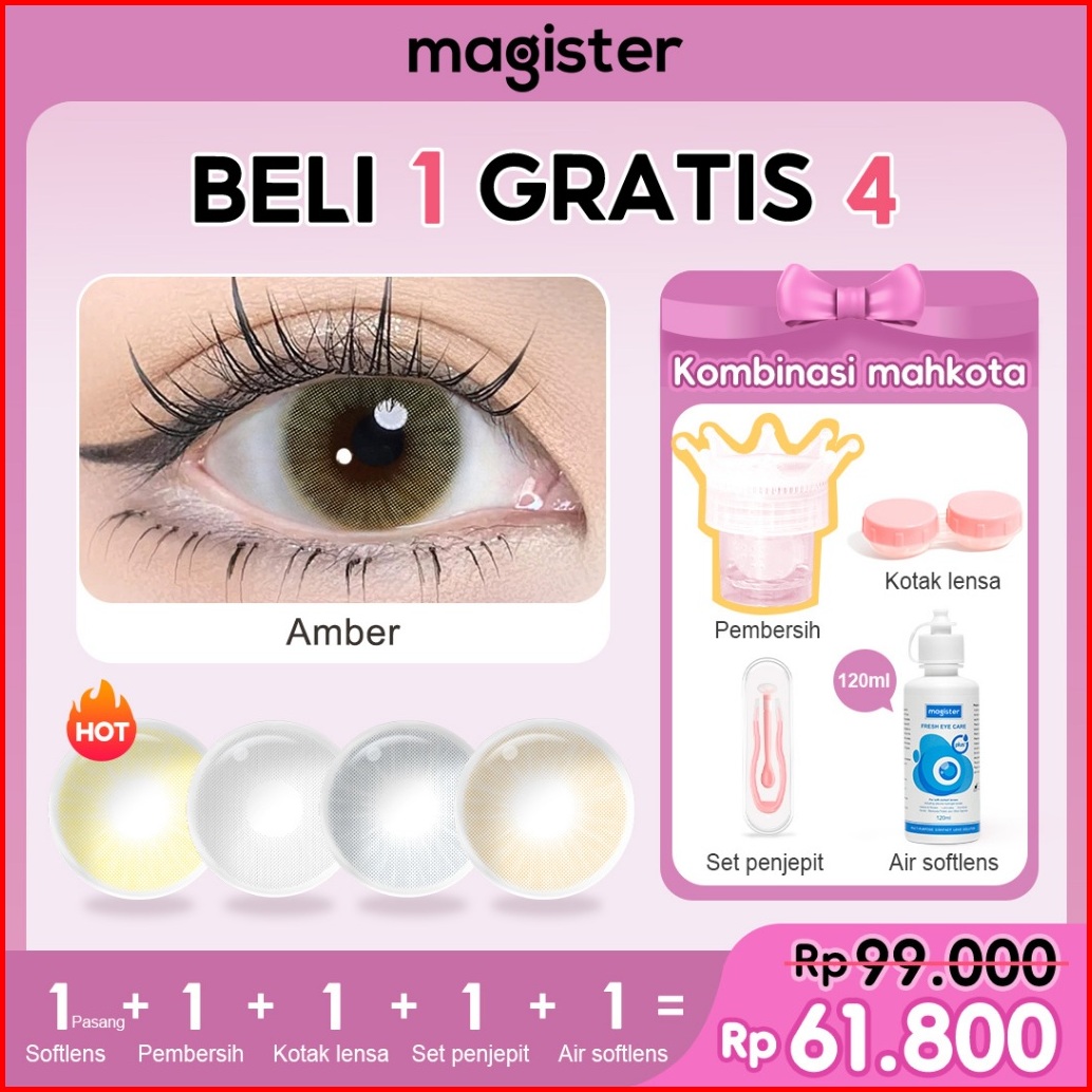 Terlaris Gaya Natural Magister Softlens 14.00mm Minus 0.00 S D -8.00 Sepasang Softlens Free Air Softlens Stick Kit Dan L