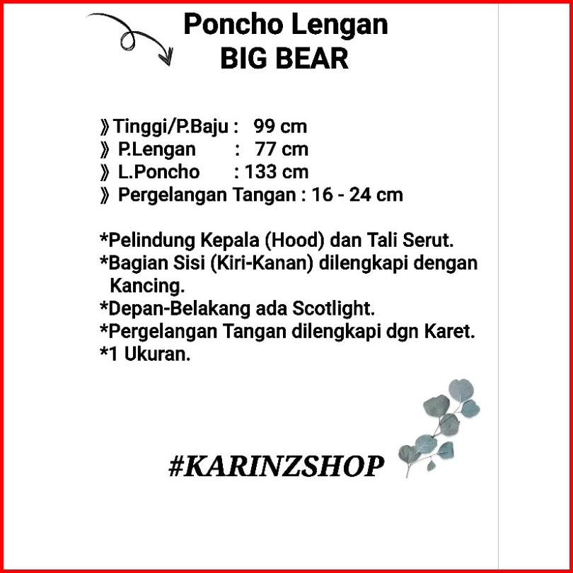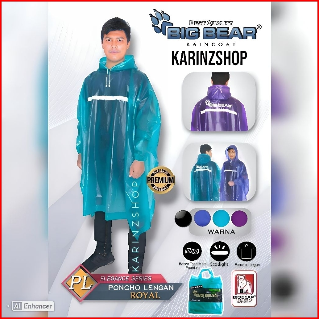 Jas Hujan Big Bear Poncho Lengan Royal Tebal Premium