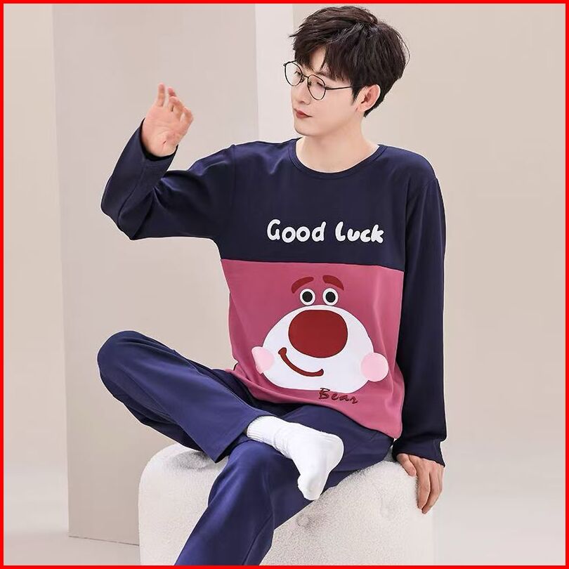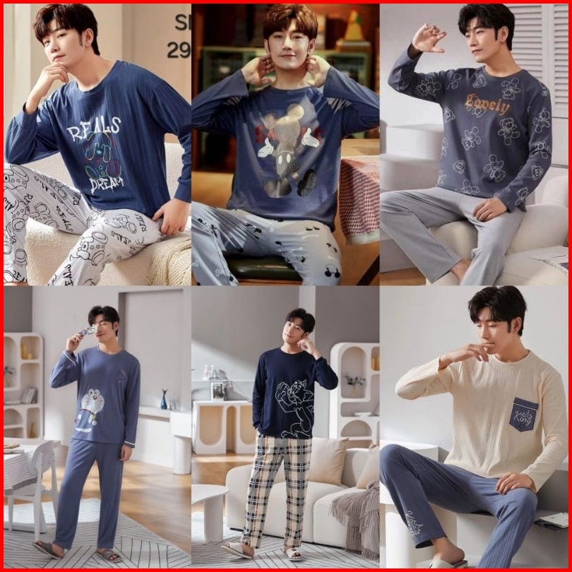 Baju Tidur Piyama Laki Laki Pp Kaos Tebel Halus Import Berkualitas Lengan Panjang Setelan Celana Panjang Motif Terbaru A