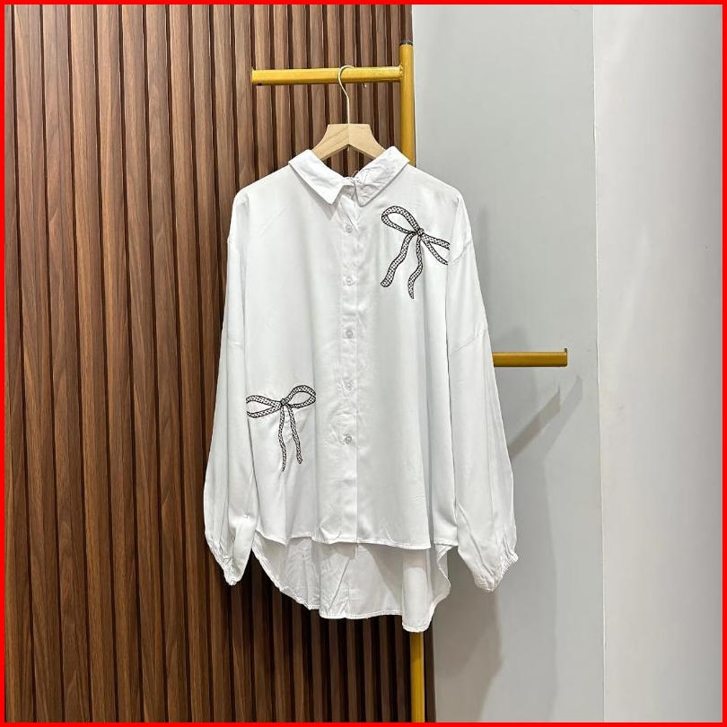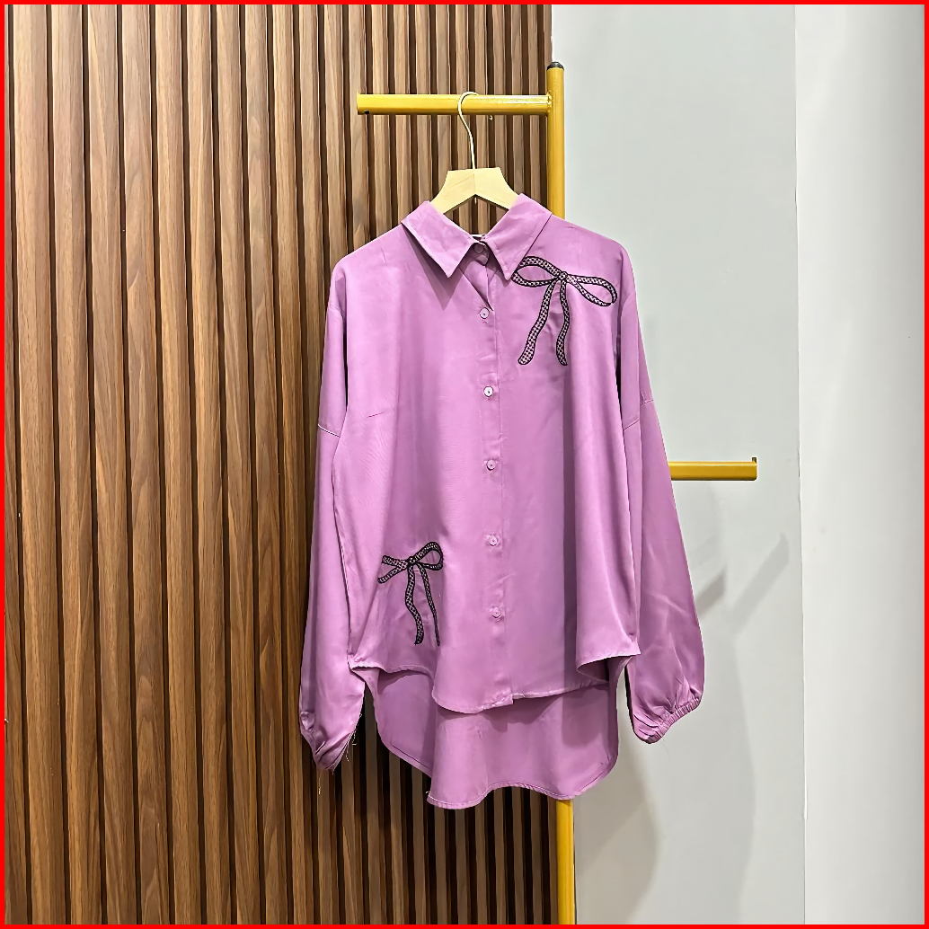 Glaudy Shirt Kemeja Rayon Twill Polos Motif Pita Bordir Atasan Wanita Kekinian Koreanstyle Terbaru Elegan