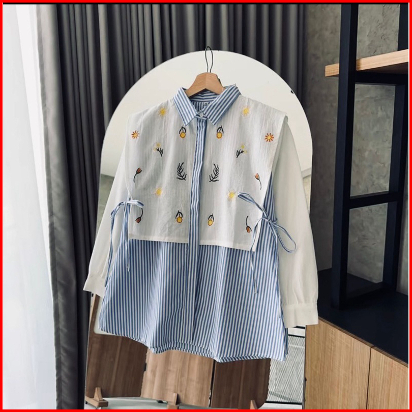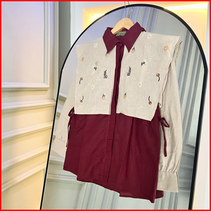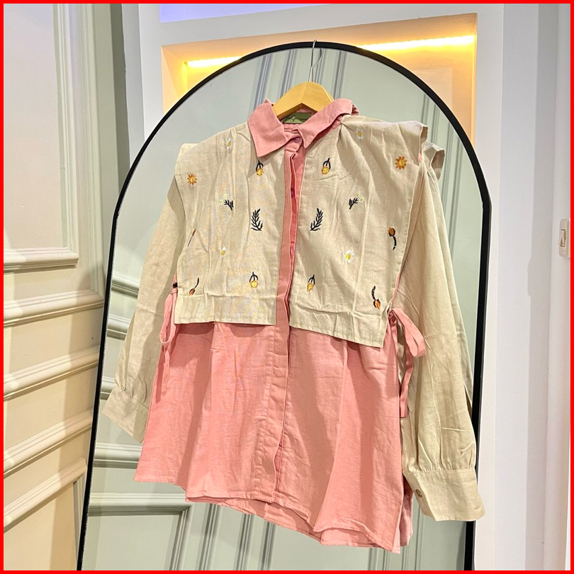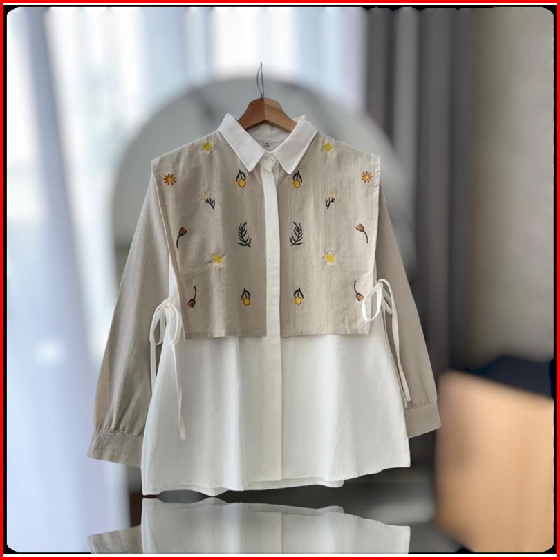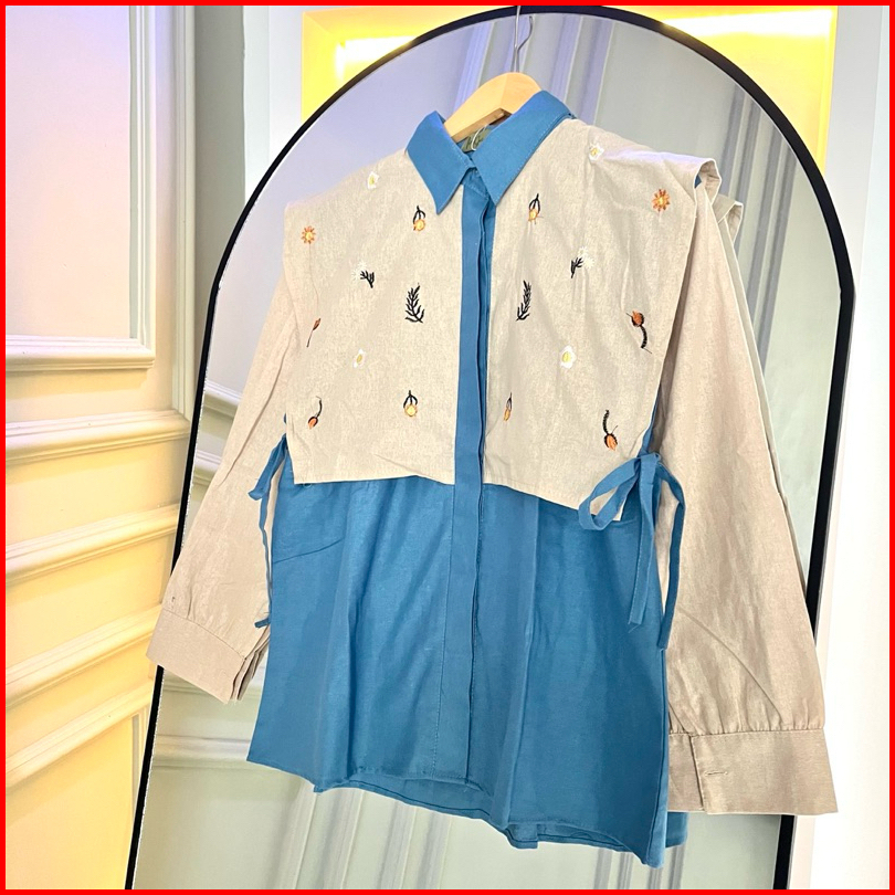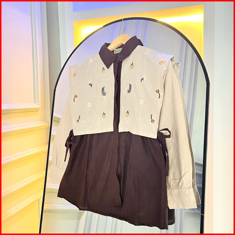 Alika Shirt - Kemeja Bordir Linen Kemeja Vest Ikat Bordir Oversize Wanita