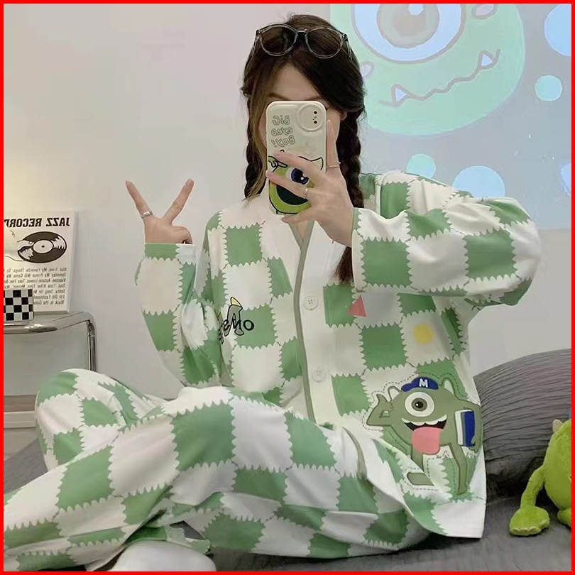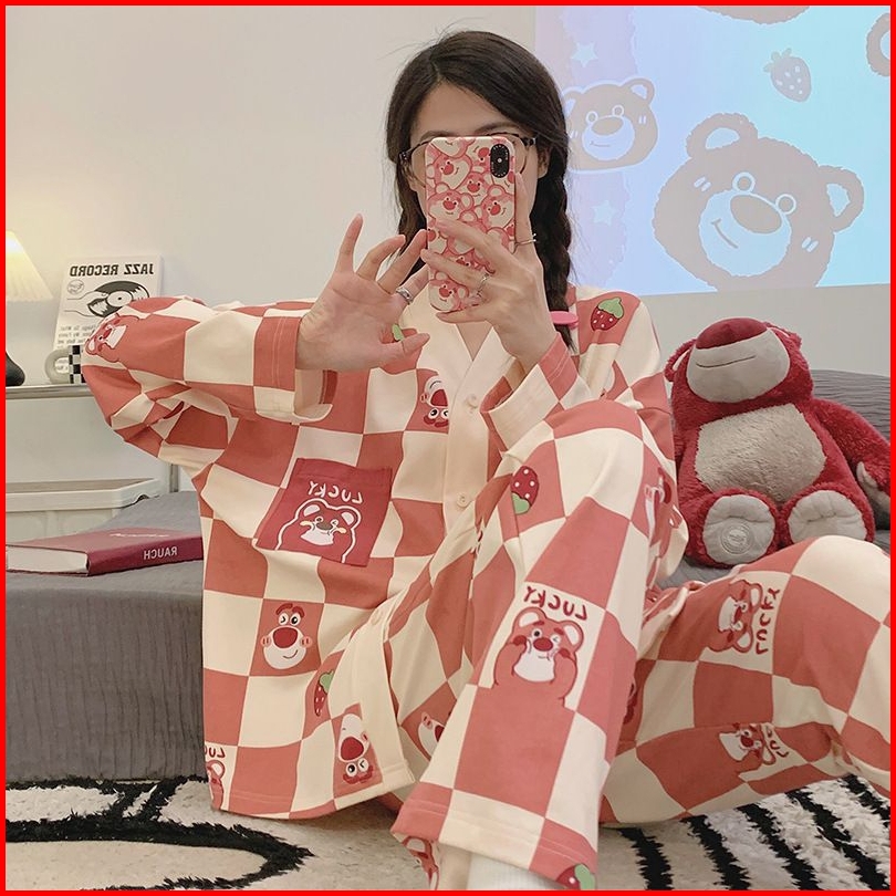 Baju Tidur Kancing Lengan Panjang Celana Panjang Baju Tidur Wanita Piyama Cewek Korea Aesthetic