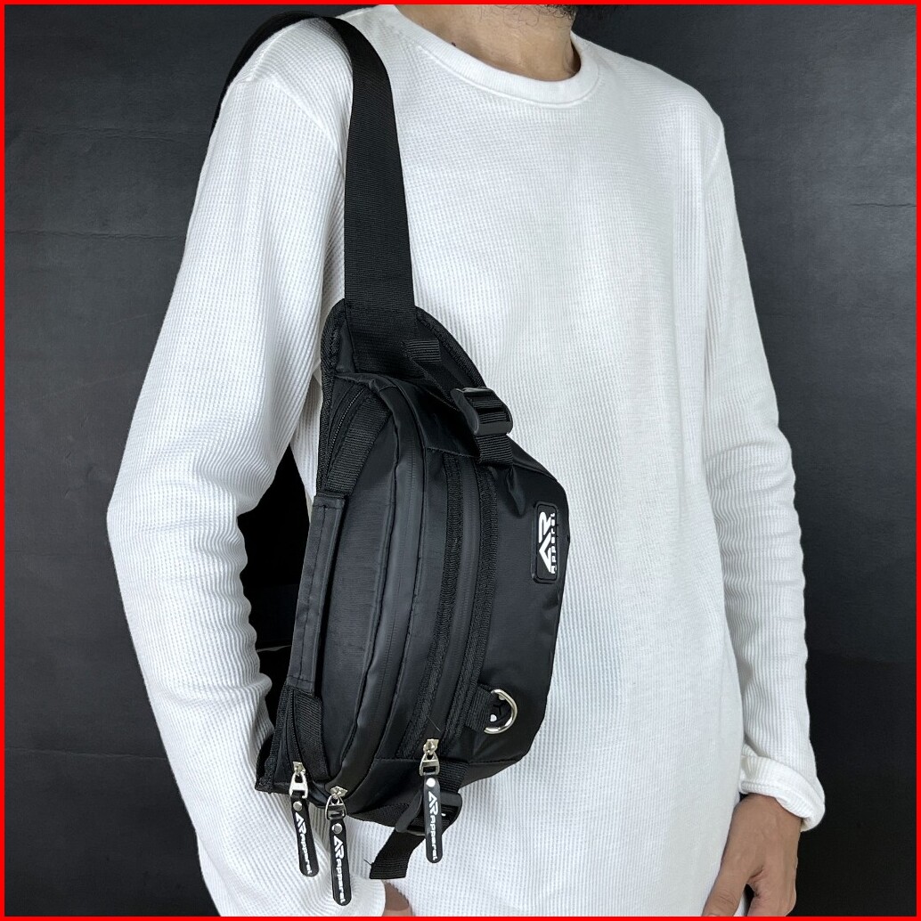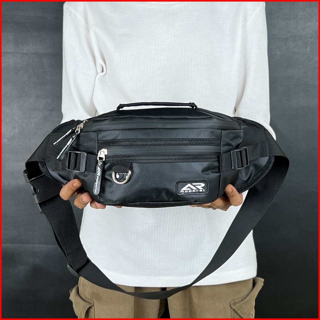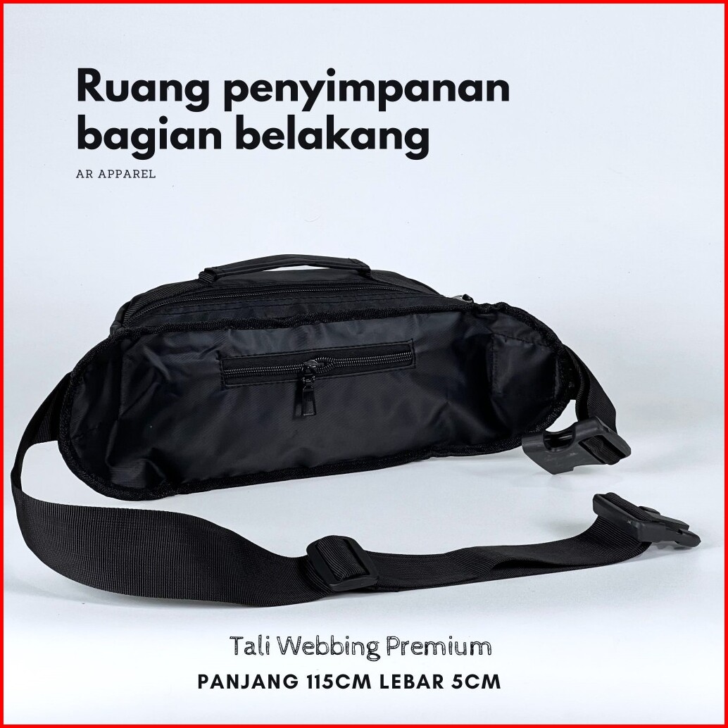 Tas Selempang Pria Ar Apparel Black Box Waistbag Slingbag Casual Tas Pinggang Cowok Multifungsi