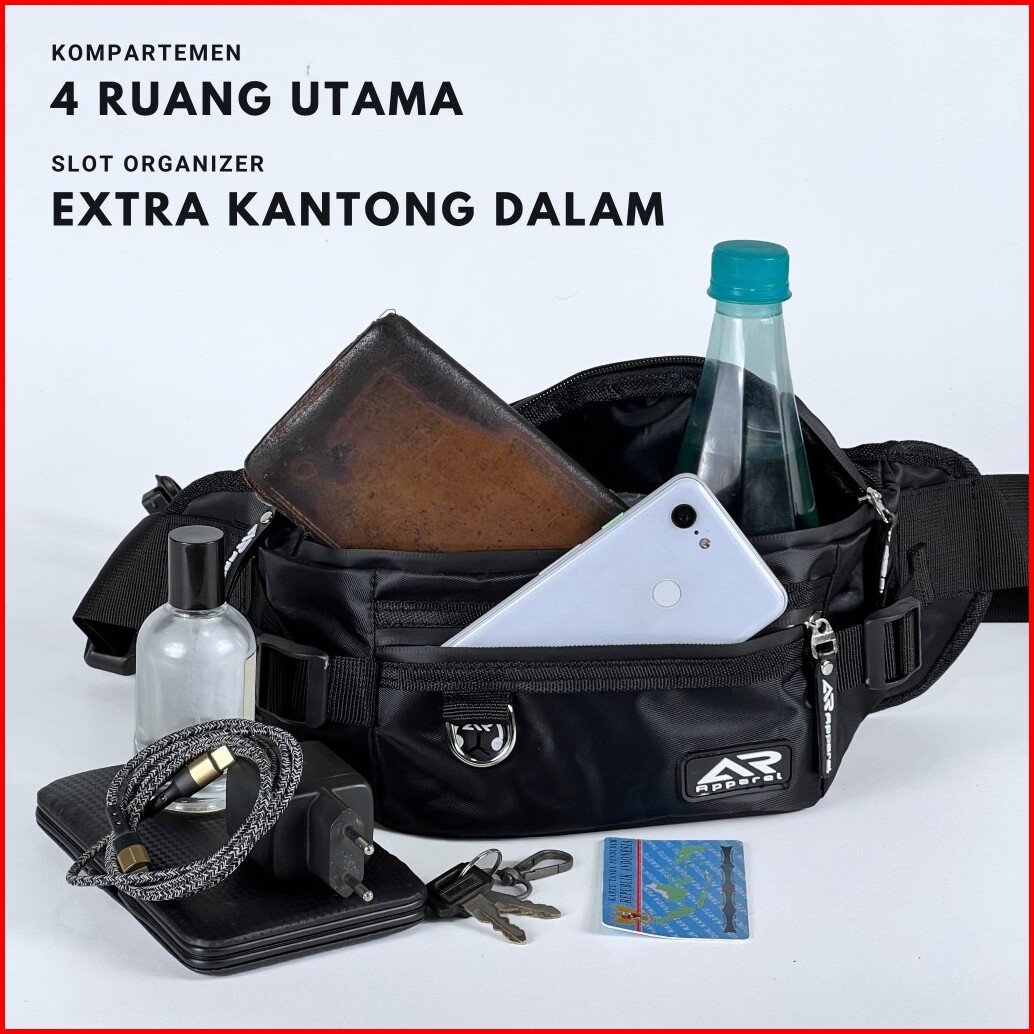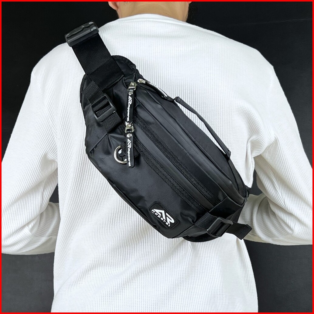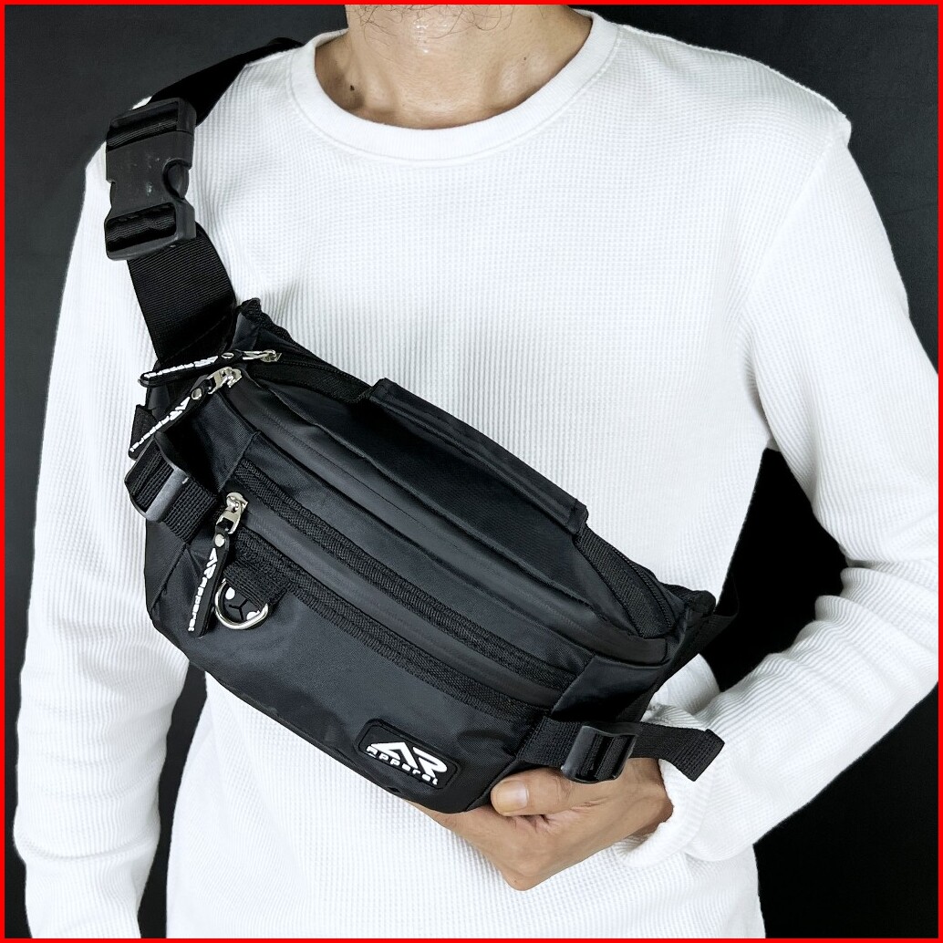 Tas Selempang Pria Ar Apparel Black Box Waistbag Slingbag Casual Tas Pinggang Cowok Multifungsi