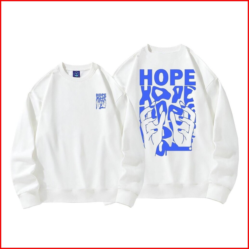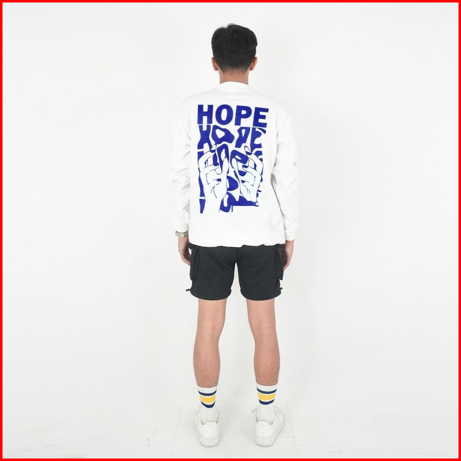 Crewneck Hope White Unsiex Pria Wanita Sweater Fleece Bandung Shop