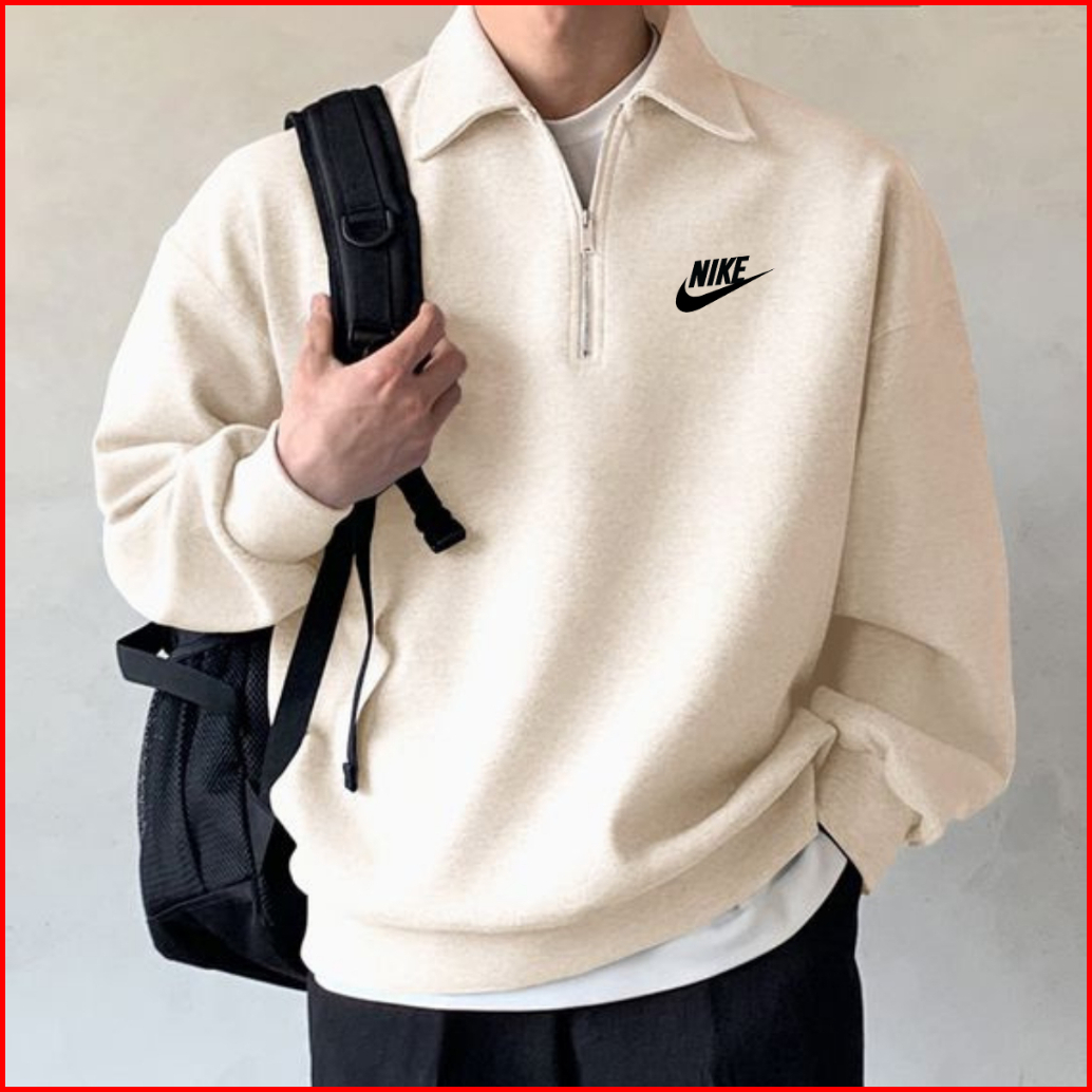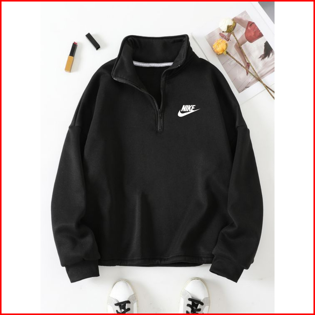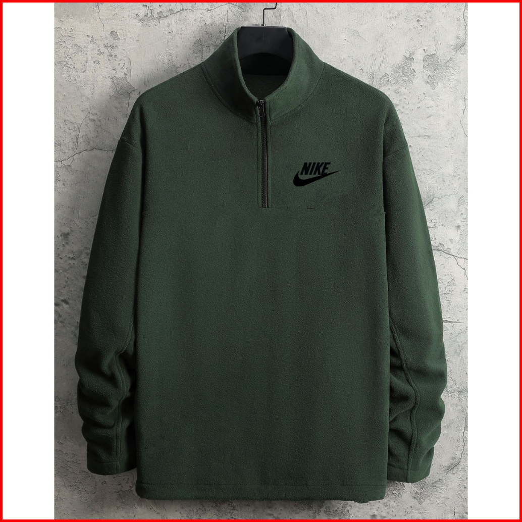 Half Zip Niikke Logo Premium Pria Wanita Bahan Fleece Tebal Kerah Turtleneck Sweater High Neck
