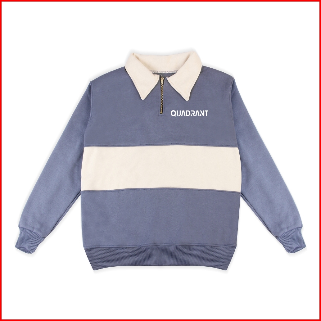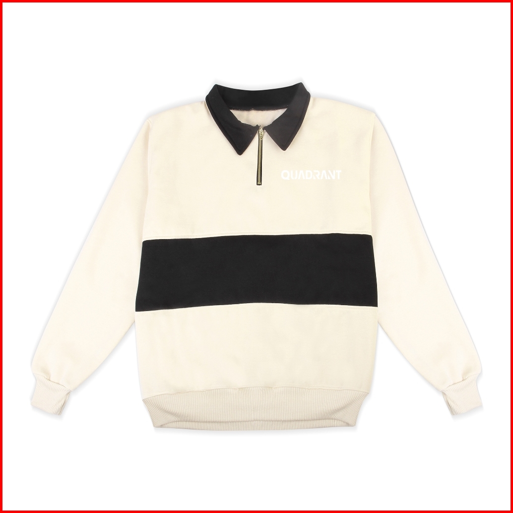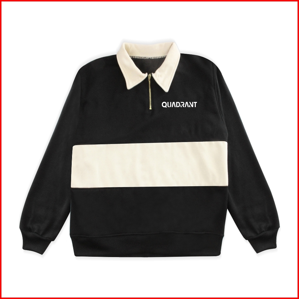 Quadrant Sweater Pria Half Zip Rugby Hitam Denim Cream