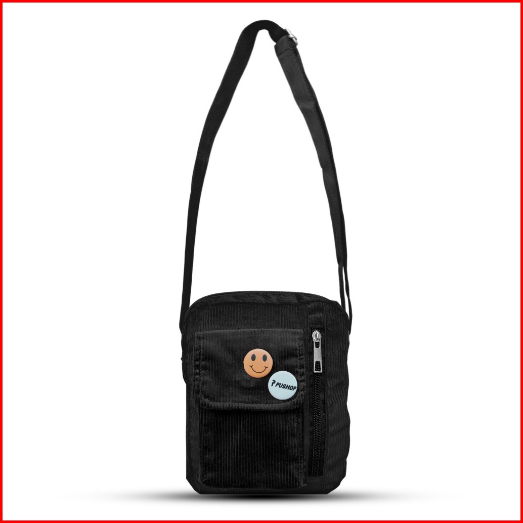 Pushop - Slingbag Danito Kanvas Corduroy Tas Selempang - Unisex Free Pin