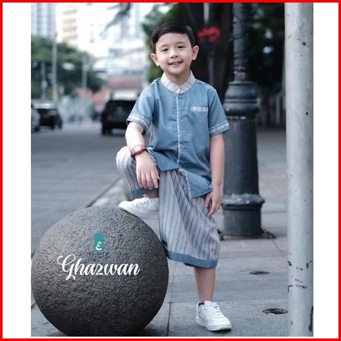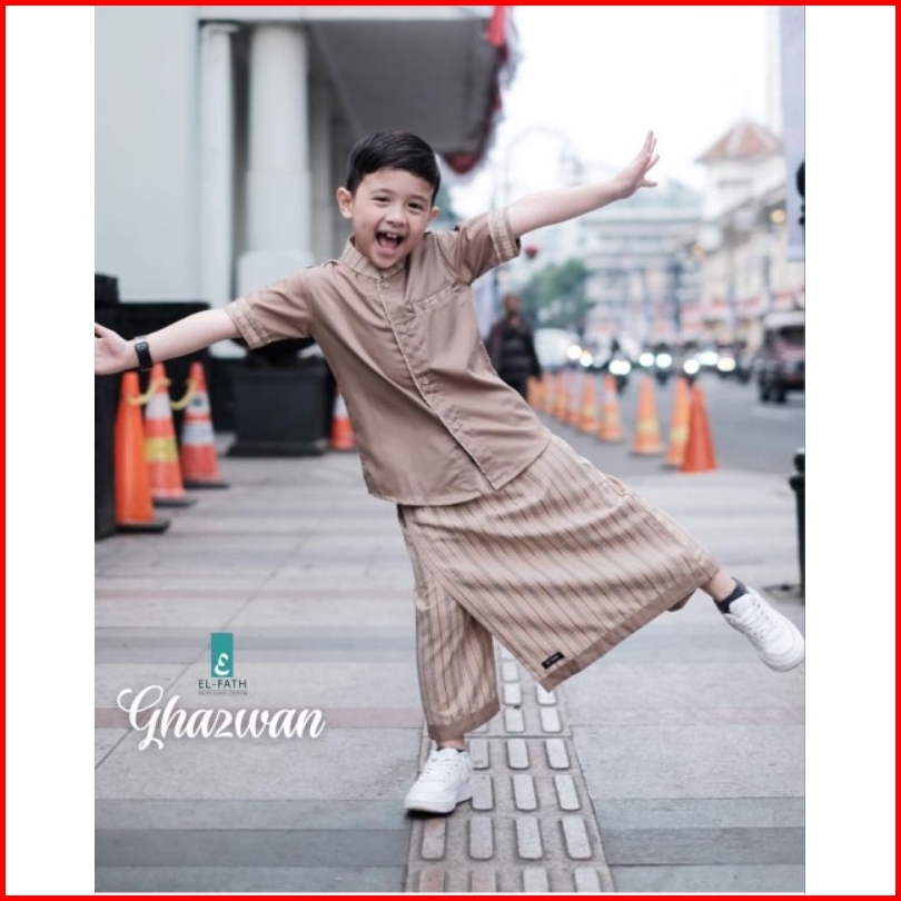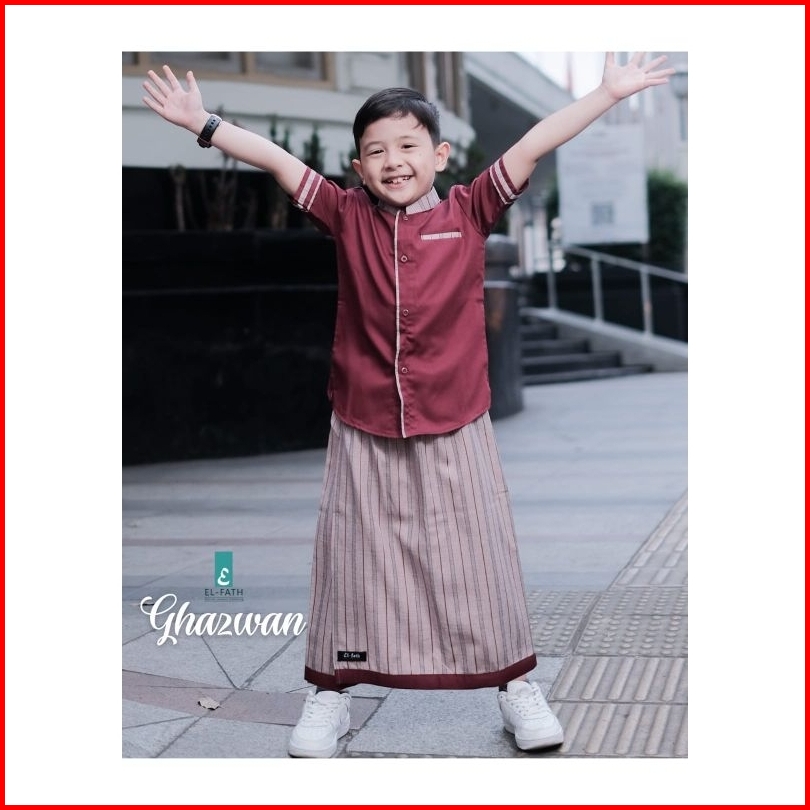 Setelan Baju Koko Anak Laki-laki Sarung Celana Ghazwan Original By El-fath Koko Lengan Pendek Usia 2-12 Thn