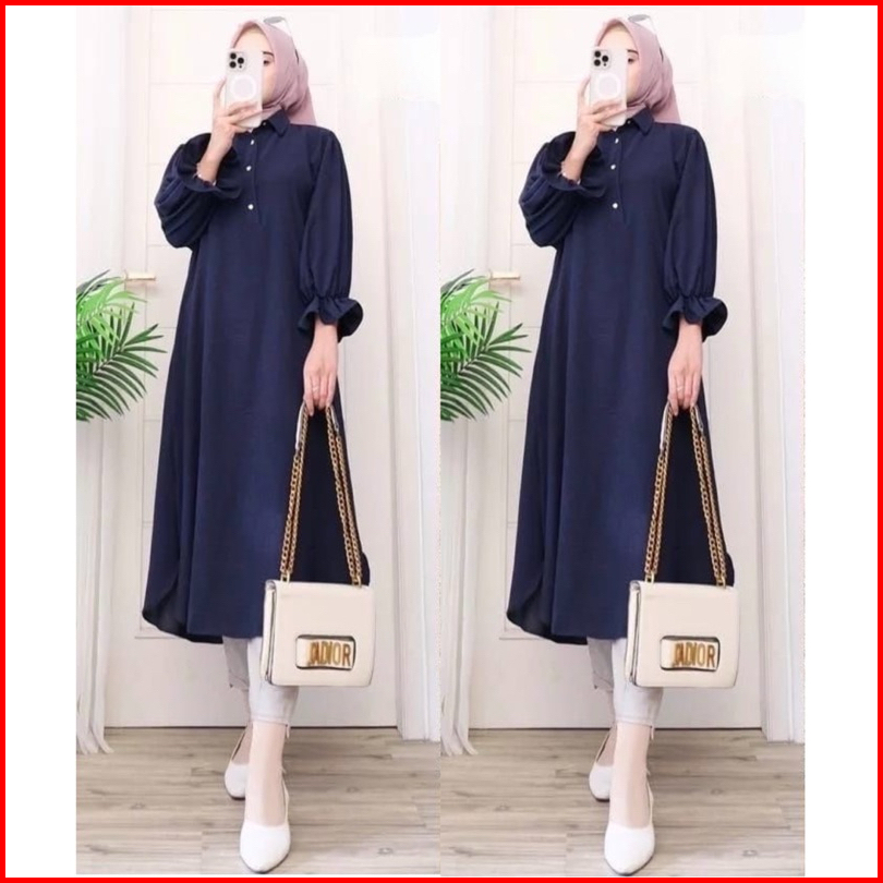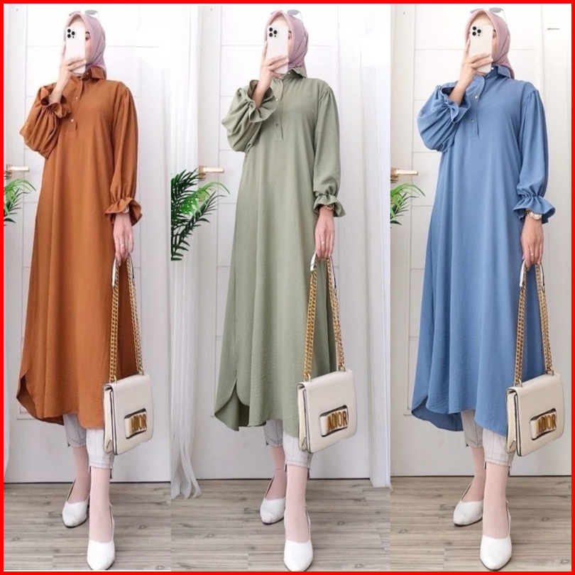 Azarin Long Tunik Wanita Crinkle Airflow Premium