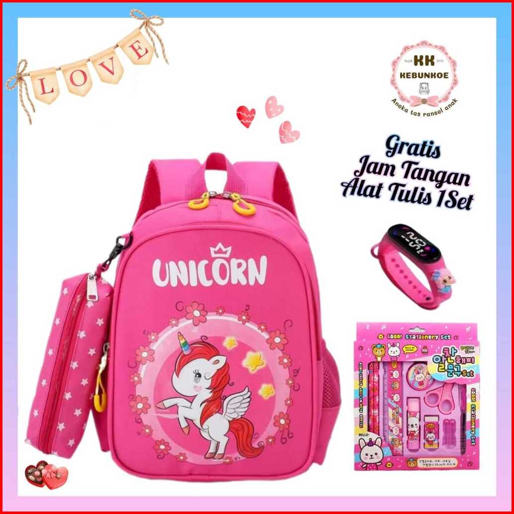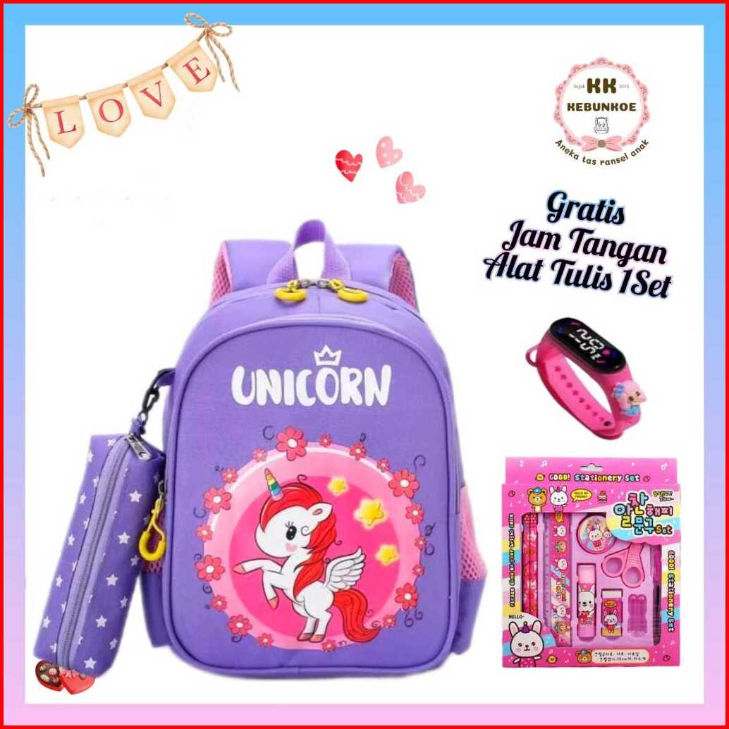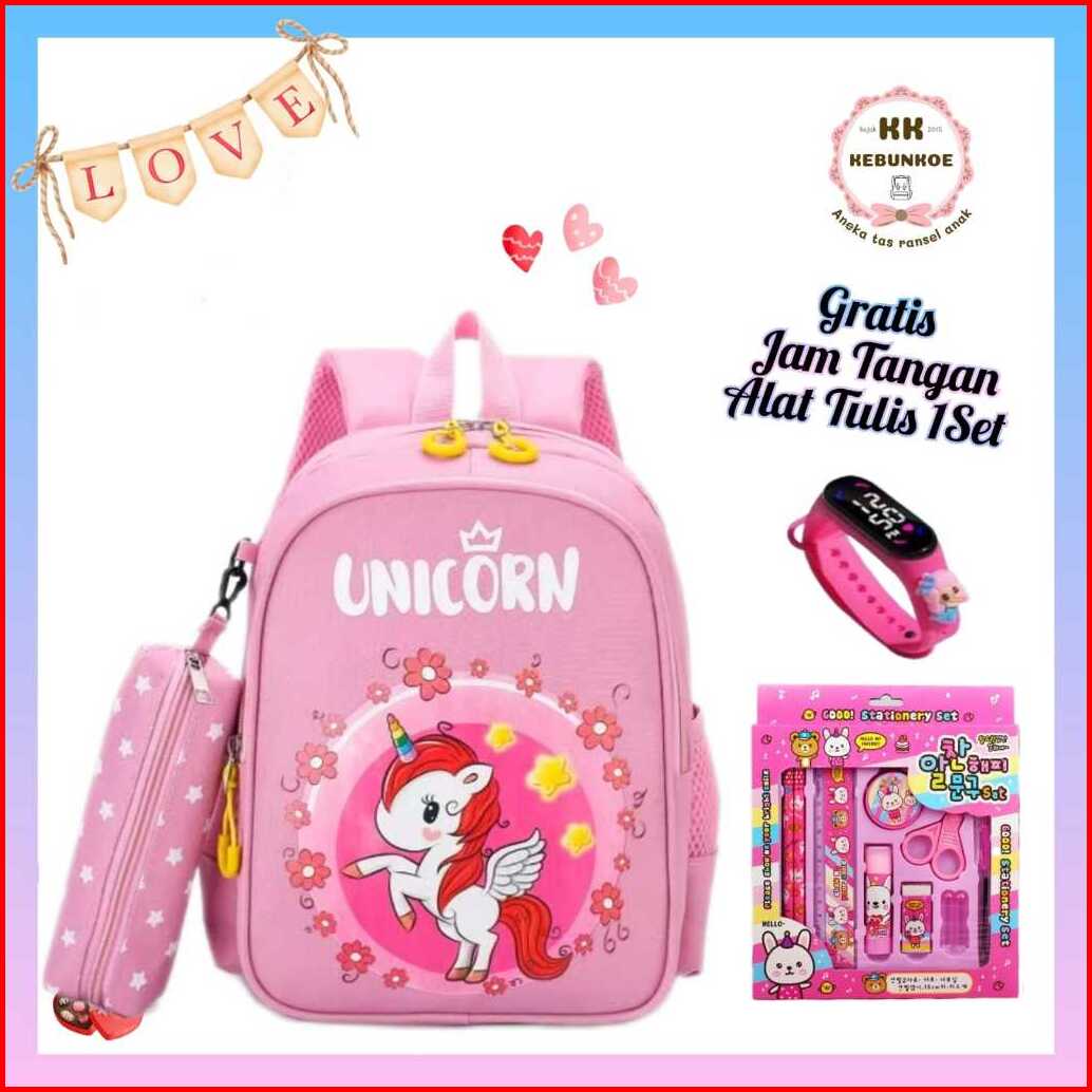 Tas Ransel Sekolah Anak Perempuan Paud Tk Sd Model Unico Bonus Jam Tangan Dan 1 Set Alat Tulis Cantik