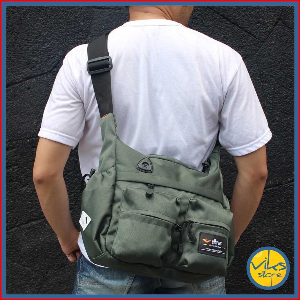 Tas Selempang Pria Cowok Elbrus Original Slingbag Tas Kerja Kuliah Sekolah Besar Simple Slempang