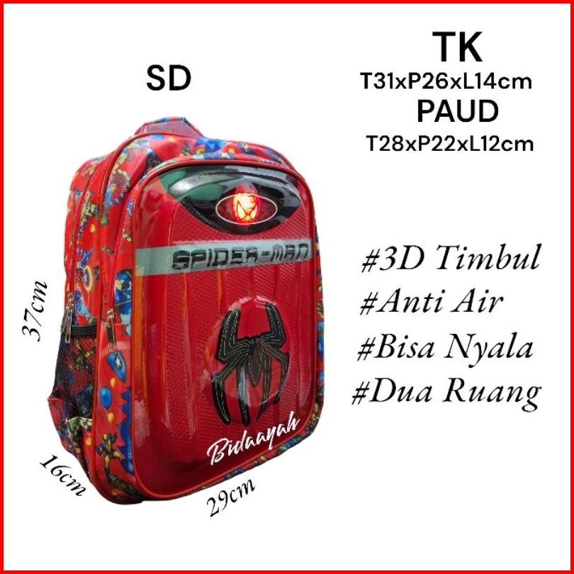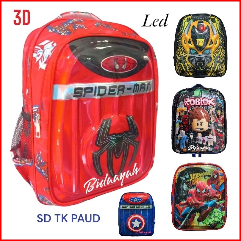 Tas Anak Sekolah Tk Sd Dan Paud 3d Timbul Led Model Embos Anak Laki Laki Dua Ruang Varian Karakter Beragam Spiderman