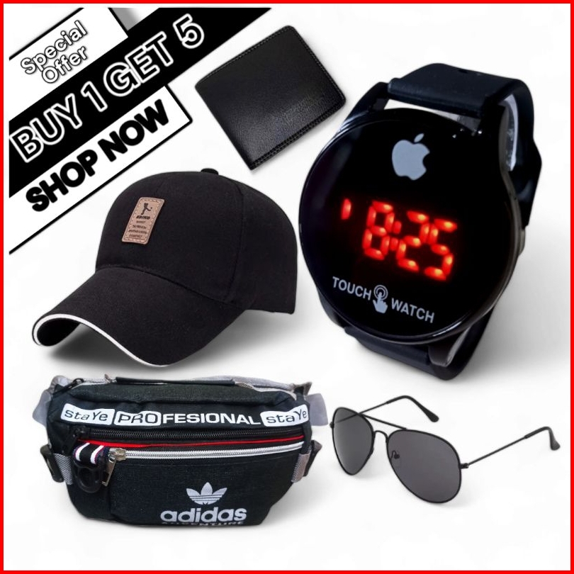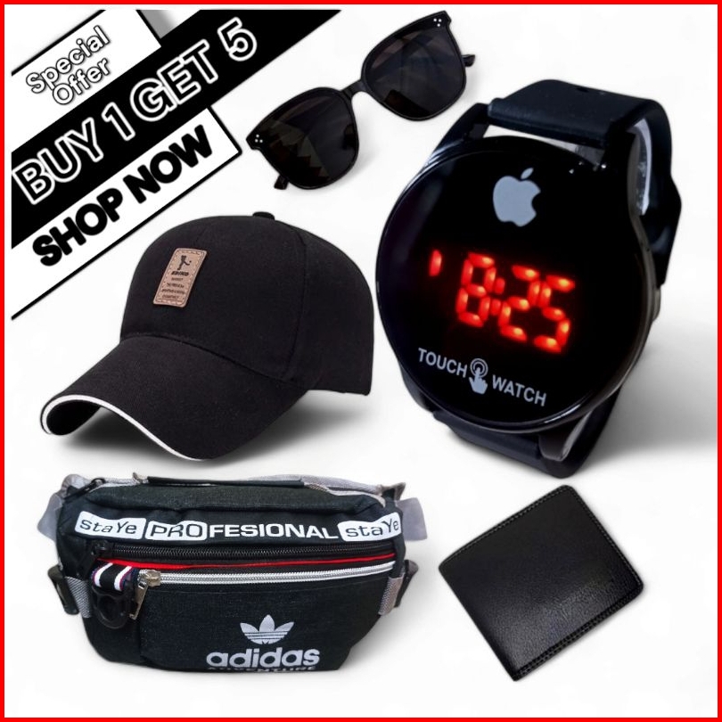 Jam Led Touchscreen Touch Watch Paket Bundling Beli 1 Dapat 5 Jam Tangan Led Touch Watch Waistbag Selempang Topi Distro
