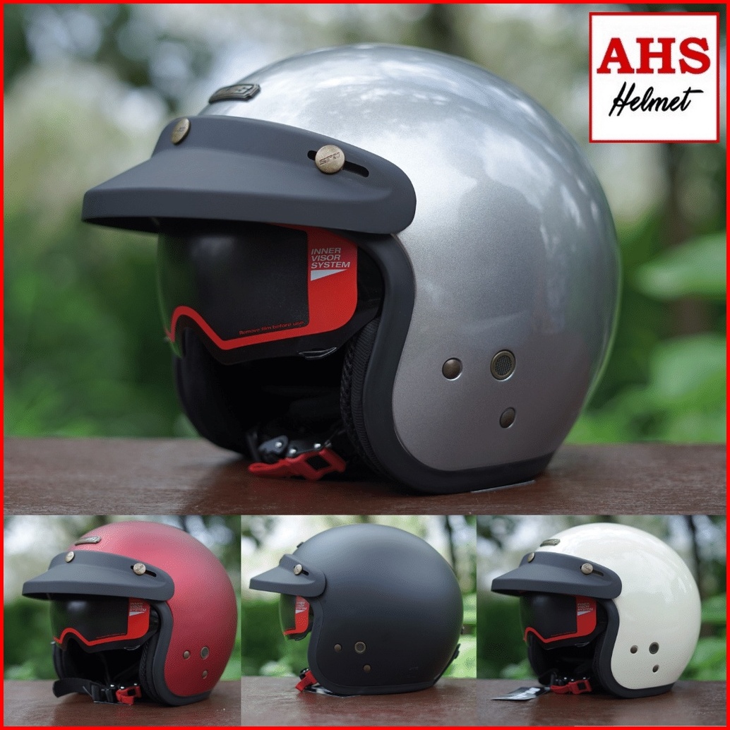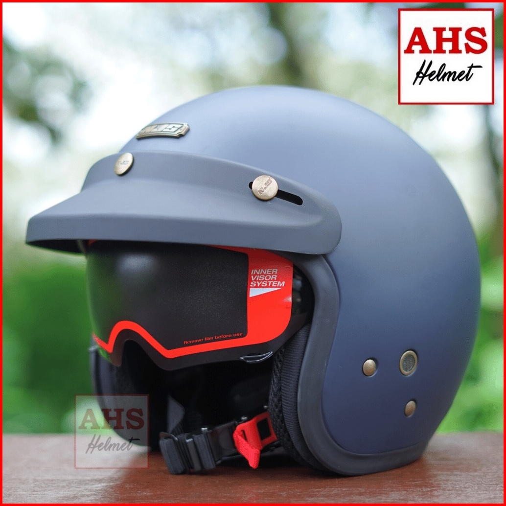 Helm Retro Njs Nx 2 Inner Visor Solid Full Leher Premium Sni