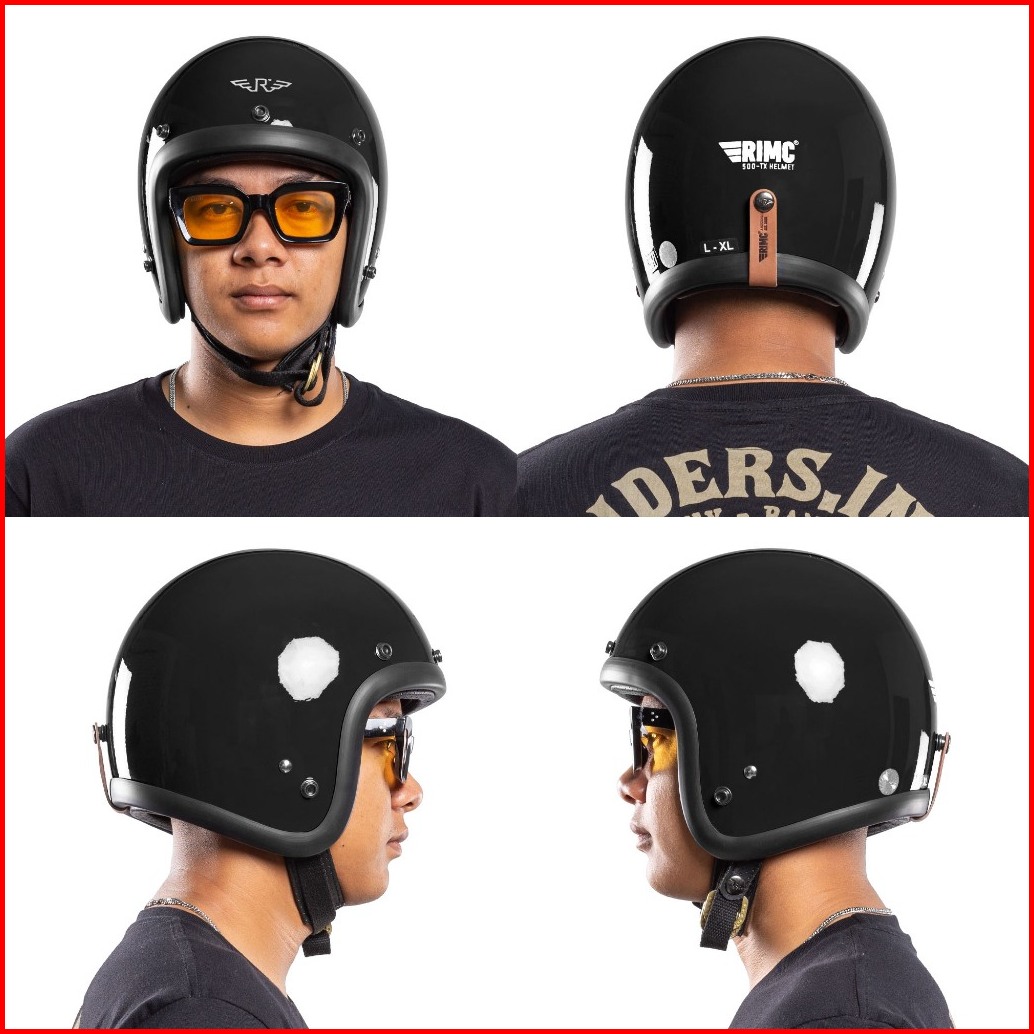 Rimc Slim Helmet 500-tx Black Glossy Helm Slim Retro Klasik Sni
