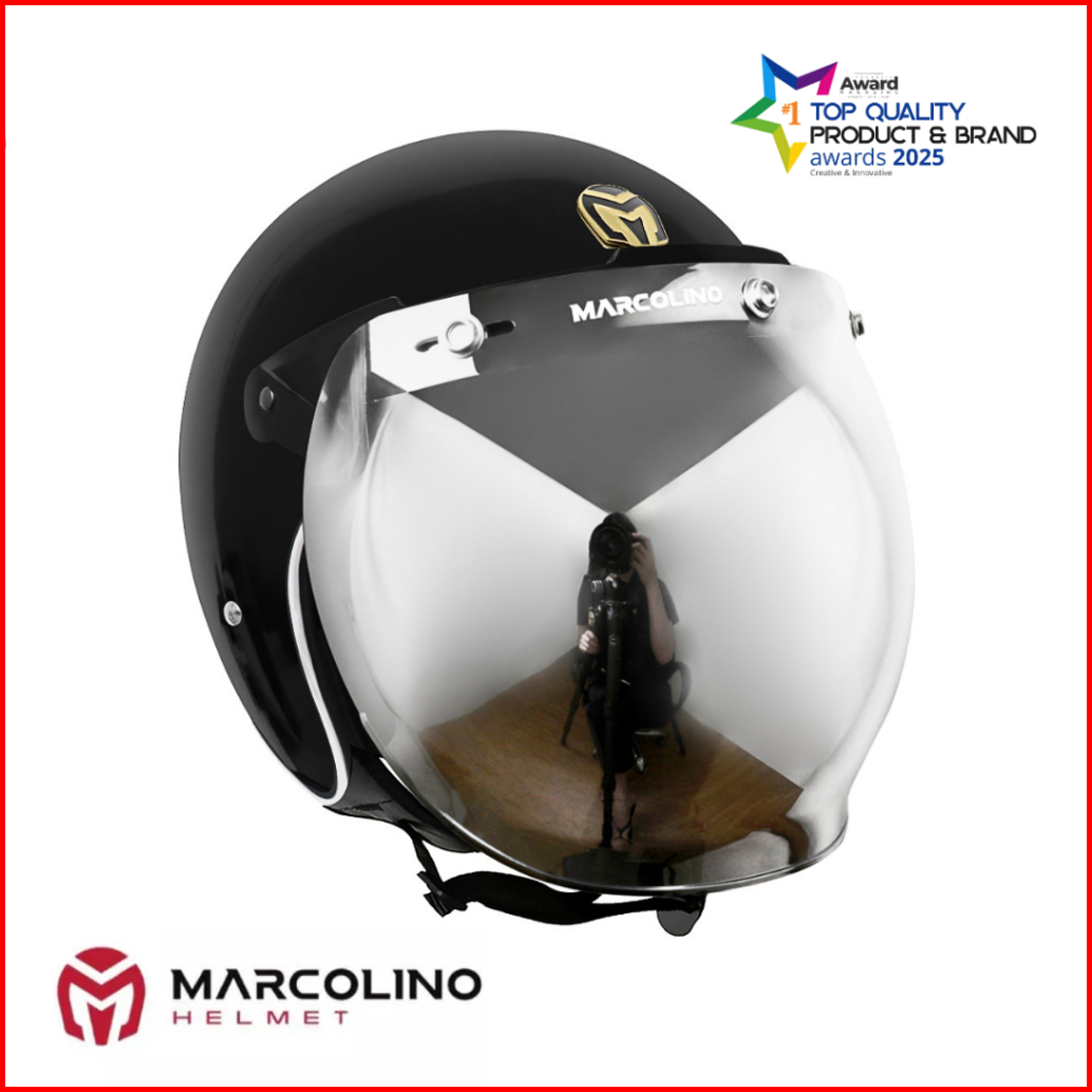 Black Classic With Visor Helm Bogo Retro Marcolino Classic Edition Sni List Chrome